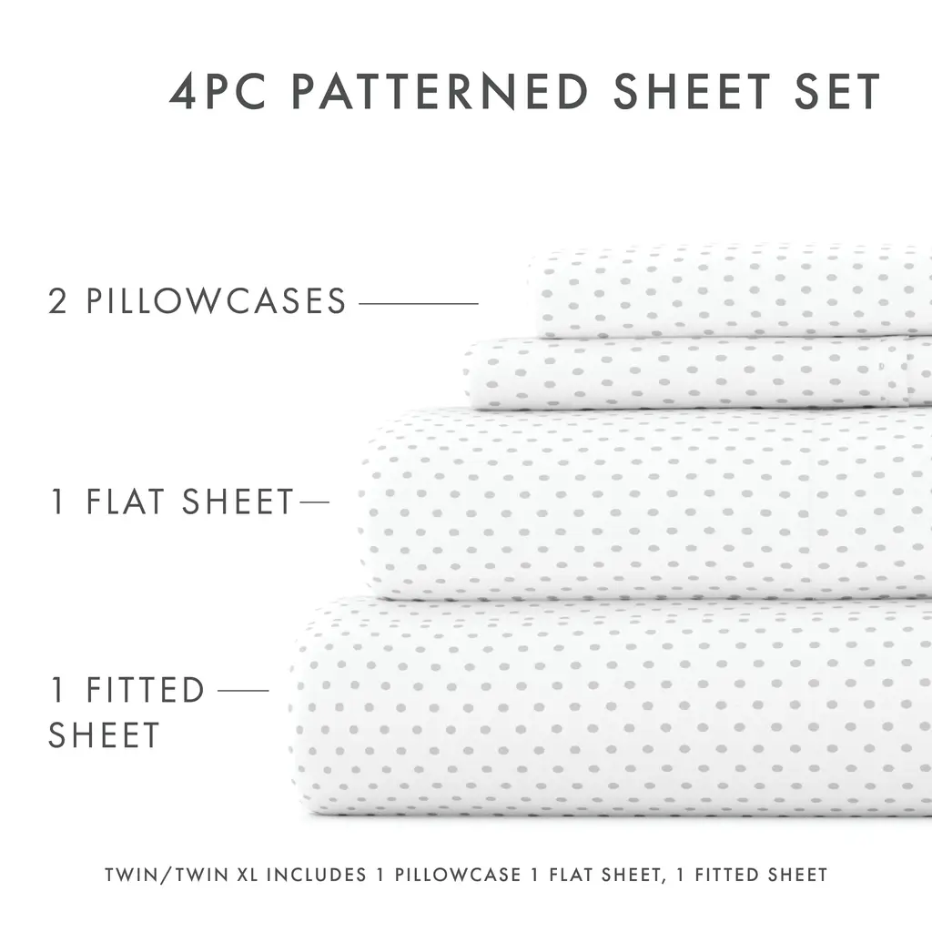 Our double-brushed patterned microfiber sheet set is super soft to the touch and wrinkle-resistant. We use premium yarns that are twice as durable as cotton, which means less risk of rips and wear. Naturally hypoallergenic, our sheets are ideal for sensitive skin and those with allergies. Available in a variety of unique designer prints and patterns, including florals, geometrics, and stripes, making it the perfect new addition to your room!