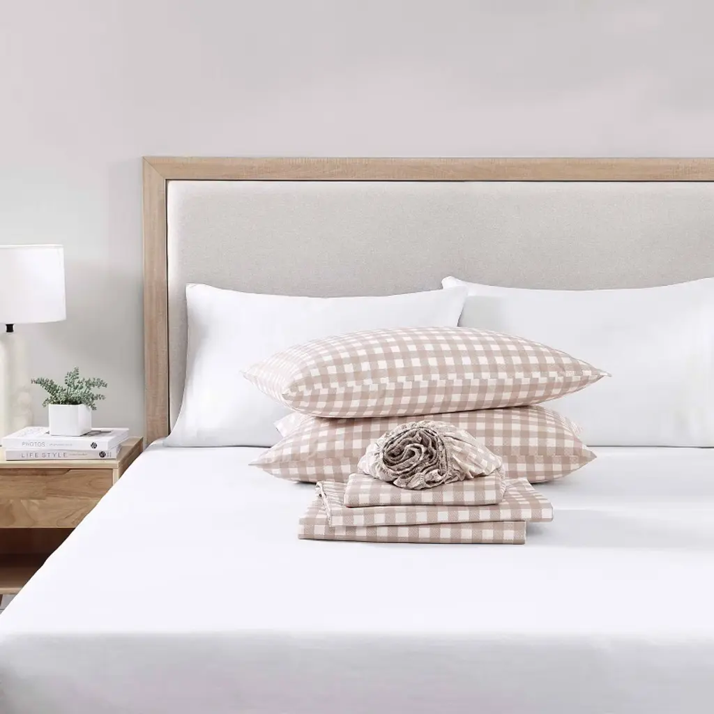 Add gorgeous rustic charm to your bedroom décor with a new printed percale Cotton sheet set from Stone Cottage available in a variety of relaxed farmhouse and vintage cottage patterns, these sheet sets will coordinate beautifully with any bedding ensemble and provide a restful night's sleep. Introducing the Cottage Check sheet set in beige, offering a clean, modern touch to your bedroom. This set brings a sense of familiarity and warmth, evoking feelings of nostalgia and timeless tradition. Constructed with high quality percale Cotton, these crisp and breathable 200 thread count sheets are a must have for any bed. The included fitted sheet features a deep pocket and fits mattresses up to 16" deep for twin size, 17" deep for full size and up to 18" deep for queen and king sizes. Set includes one flat sheet, one fitted and two pillowcases (one for the twin size). Sheets and pillowcases are machine washable for easy and convenient care.