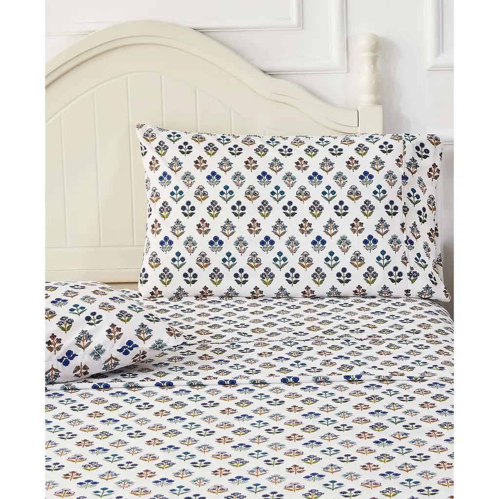 Woven from 100% cotton and pre-washed for softness, Bedford Lane's Sumita Floral sheet set is in percale to give you the crisp feel of heirloom linens passed down through generations. Featuring a vibrant, timeless print, it brings a cozy charm to any space.