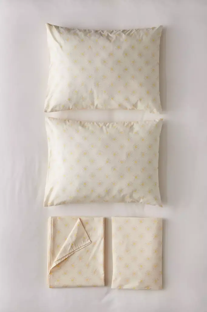 Wrap up in the sun’s rays with this sheet set topped with a beaming sun print allover. Made in a breathable cotton blend that feels so light and luxurious when you slip underneath. Available exclusively at Urban Outfitters.