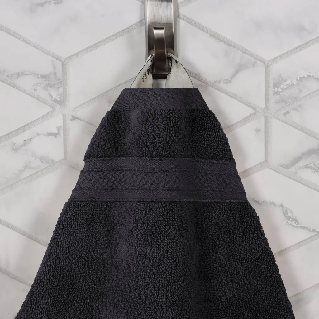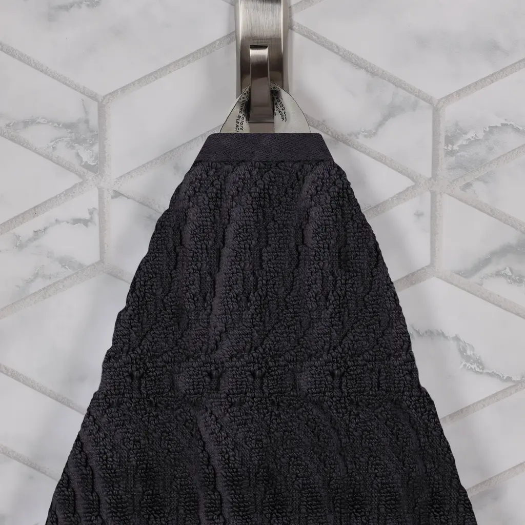 Superior Chevron Zero Twist Solid And Jacquard Cotton Bath Sheet Set Of 2 - Black