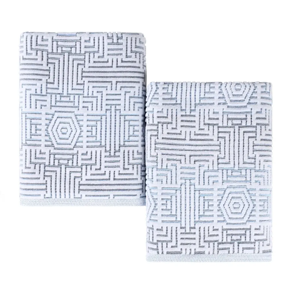Superior Jasper Cotton Modern Geometric Jacquard Bath Sheet Set Of 2 - Blue