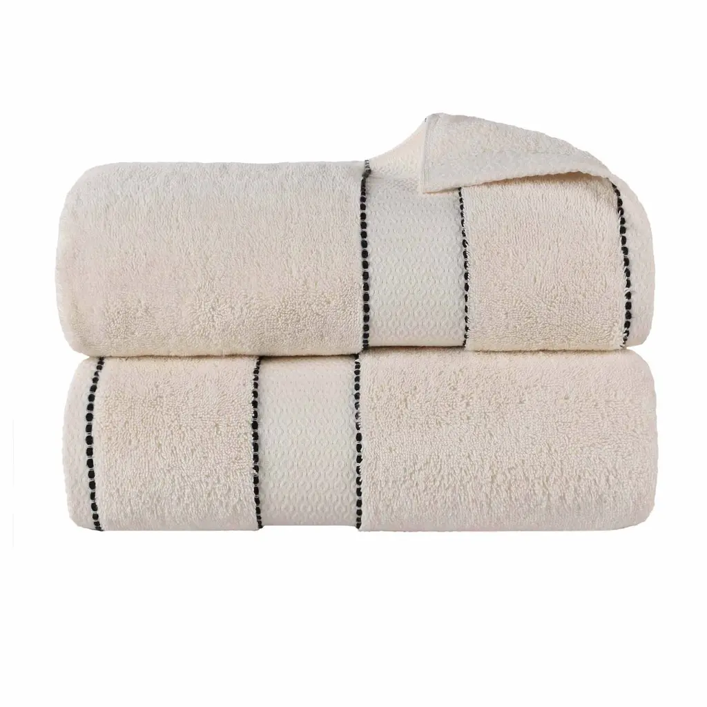 Make an elegant statement in your master bath with the Superior Niles Cotton Bath Sheet Set. Our Egypt produced Giza Cotton towels feature impressive absorbency, a smooth texture, and silky feel for a luxury spa-like experience at home. The heavyweight thickness of each towel is durable and perfect for the bath, poolside, or at the beach. For a refined finish, each piece in this bundle features an elegant diamond dobby border and a hanging loop for effortless drying. These towels are available in Navy Blue, Charcoal, Chocolate, White/Black, White, Ivory, Platinum, Gold, and Forest Green color options to match your bathroom decor style. Finished with secure hemmed edges to avoid fraying, these towels can withstand countless washes and last you years to come. This set includes 2 bath sheets to add luxury to your bathroom essentials.Features: