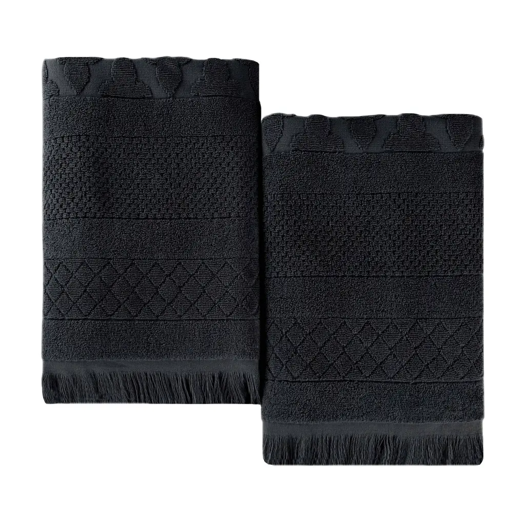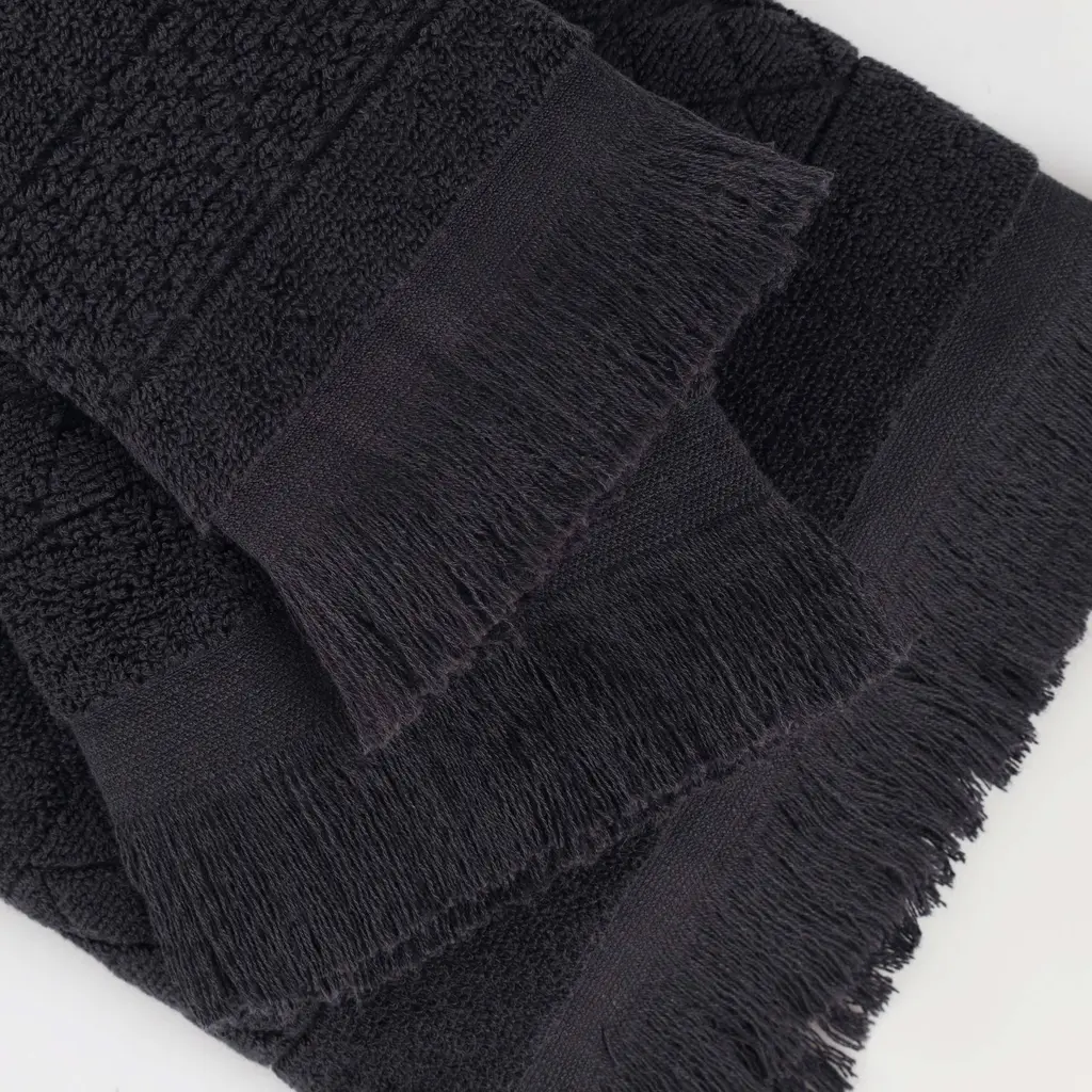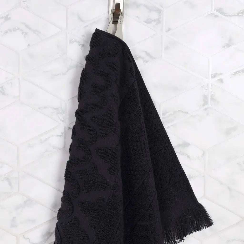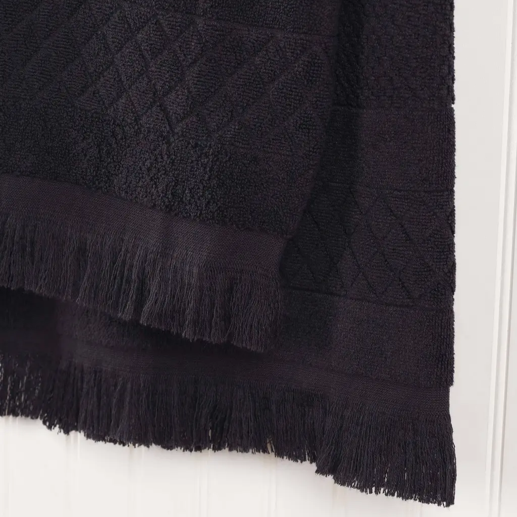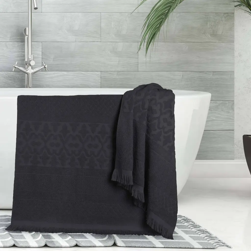 Superior Rolla Cotton Geometric Jacquard Plush Soft Bath Sheet Set Of 2 - Black