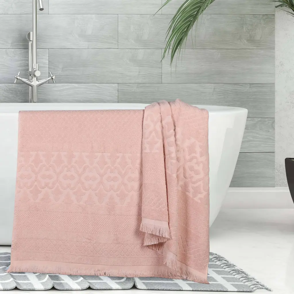 Superior Rolla Cotton Geometric Jacquard Plush Soft Bath Sheet Set Of 2 - Peach