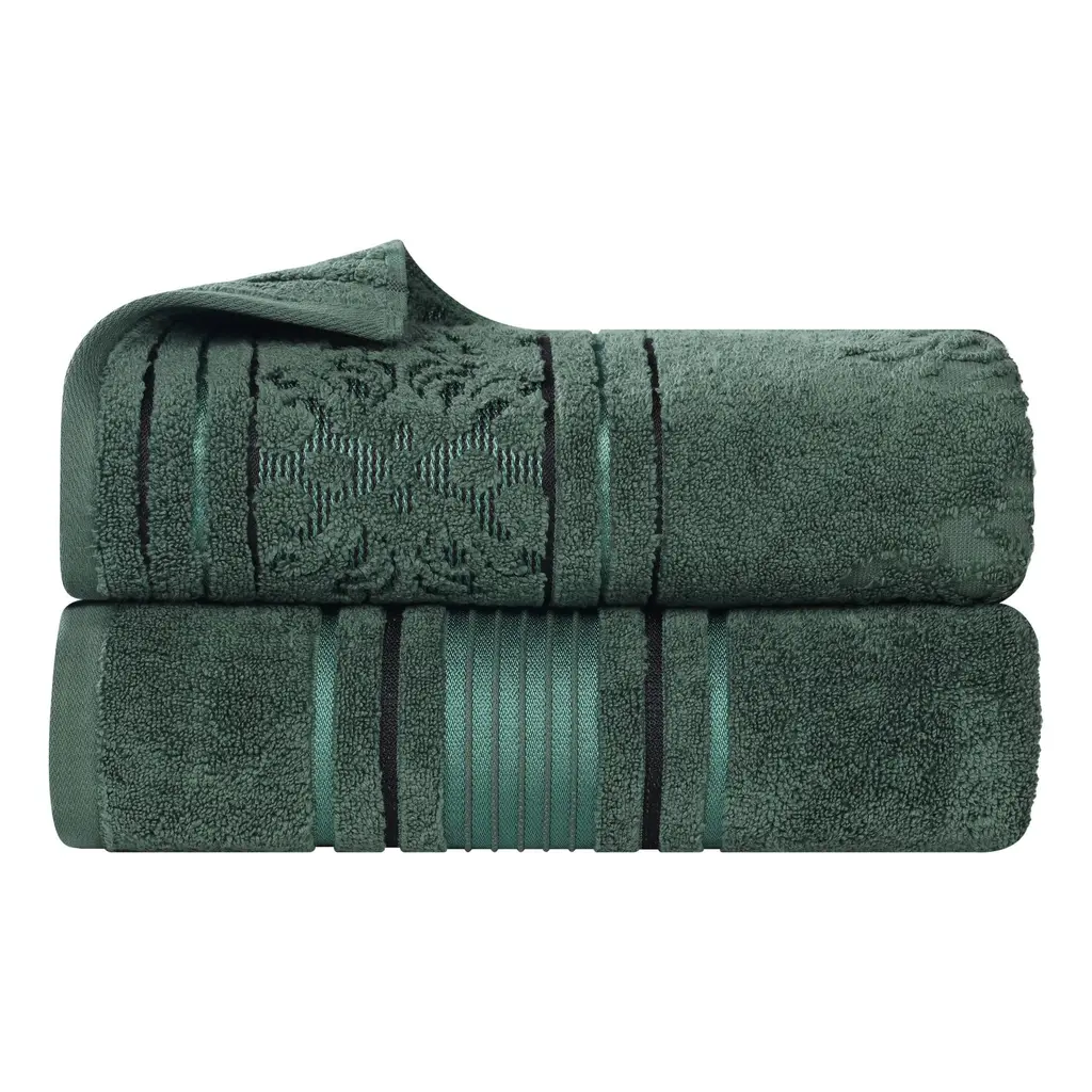 Superior Sadie Zero Twist Cotton Solid And Floral Bath Sheet Set Of 2 - Forest Green