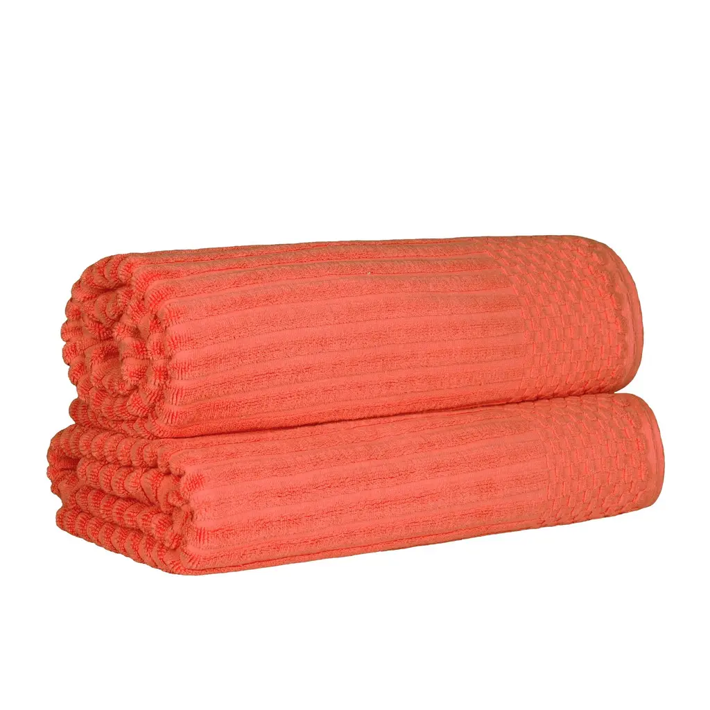 Superior Soho Ribbed Cotton Bath Sheet Set Of 2 - Coral