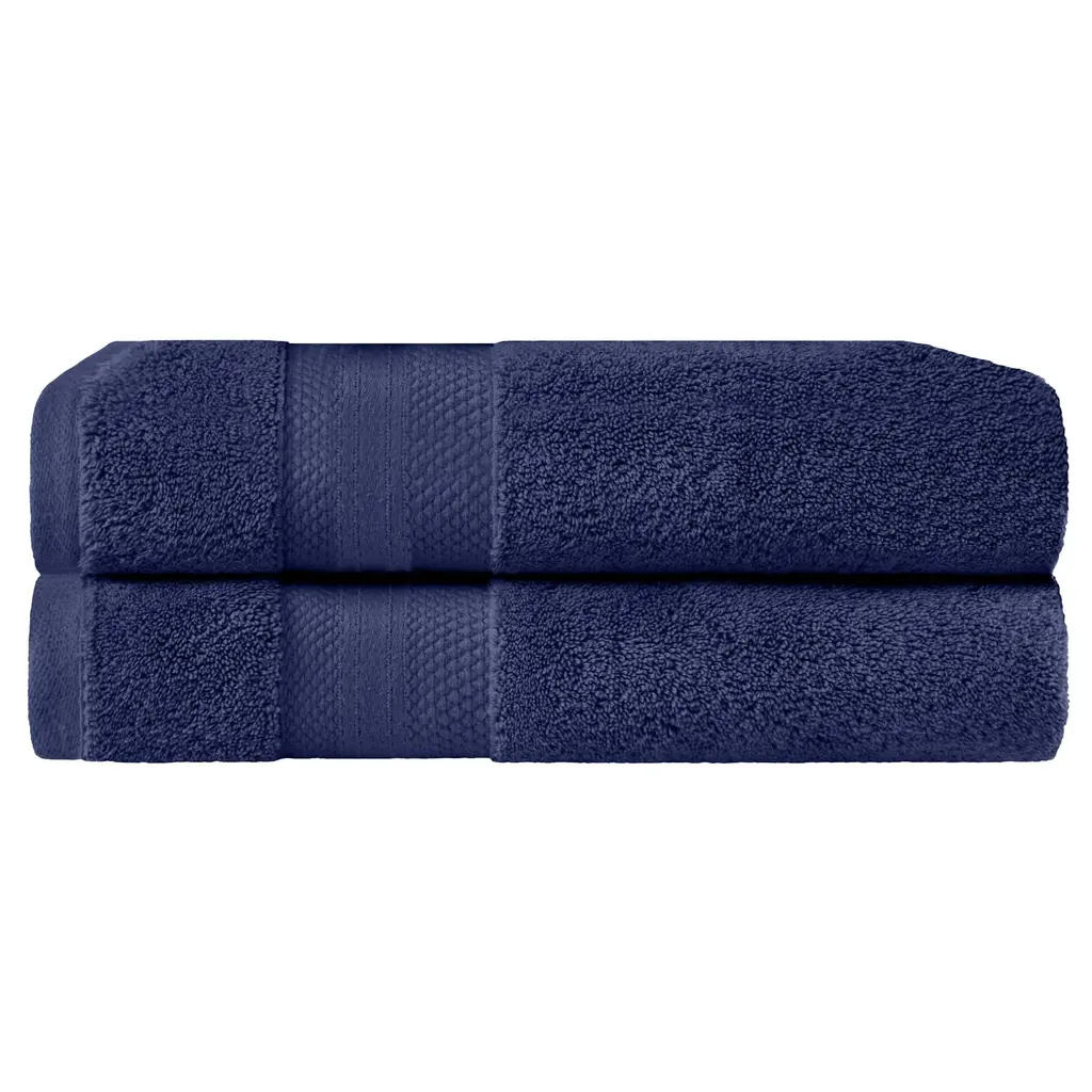 Superior Turkish Cotton Solid Heavyweight Bath Sheet Set Of 2 - Crown Blue