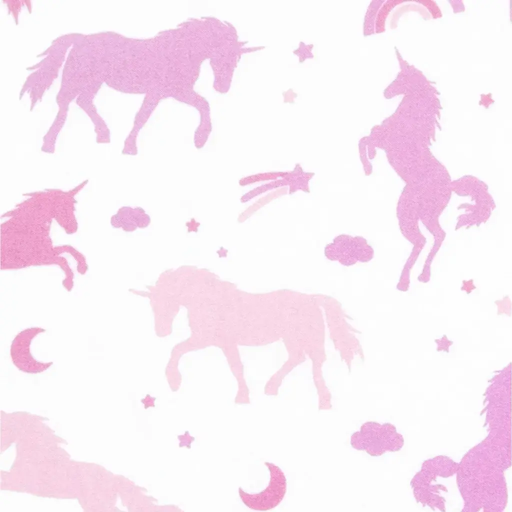 Transform your child's bedroom into a magical realm with the Kids Rule 3-Piece Unicorn Sheet Set. This delightful set includes one twin flat sheet, one twin fitted sheet, and one queen pillowcase, perfectly designed for girls who love unicorns and whimsical themes. Crafted from 100% high-grade micro-denier polyester fiber, these sheets offer a combination of softness, smoothness, and durability. The micro-denier polyester fiber ensures a luxurious feel against the skin, providing a comfortable and cozy sleeping experience for your little one. The twin flat sheet measures 66" X 96", offering ample coverage for a standard twin-size mattress. The twin fitted sheet, with dimensions of 39" X 75" X 12", is designed to fit snugly and securely around the mattress. The queen-size pillowcase, sized 20" X 30", complements the unicorn-themed sheets with its matching design. Not only do these sheets offer a delightful aesthetic, but they are also hypoallergenic, making them an excellent choice for children with sensitive skin. Furthermore, these sheets are highly resistant to shrinking and stretching, maintaining their shape and size over time. Their wrinkle-resistant nature ensures that the sheets always look neat and smooth, even after a night of tossing and turning. When it comes to cleaning and maintenance, this sheet set is a breeze. They are quick-drying, allowing for faster turnaround times between washes. Simply toss them in the washing machine and dryer on a gentle cycle and their easy-care nature ensures that the sheets look and feel their best with minimal effort. In conclusion, the Kids Rule 3-Piece Unicorn Sheet Set is a dream come true for any unicorn-loving child. With its enchanting design and many features, it offers the perfect combination of comfort, style, and convenience. Transform your child's sleep space into a magical wonderland with these delightful unicorn sheets.