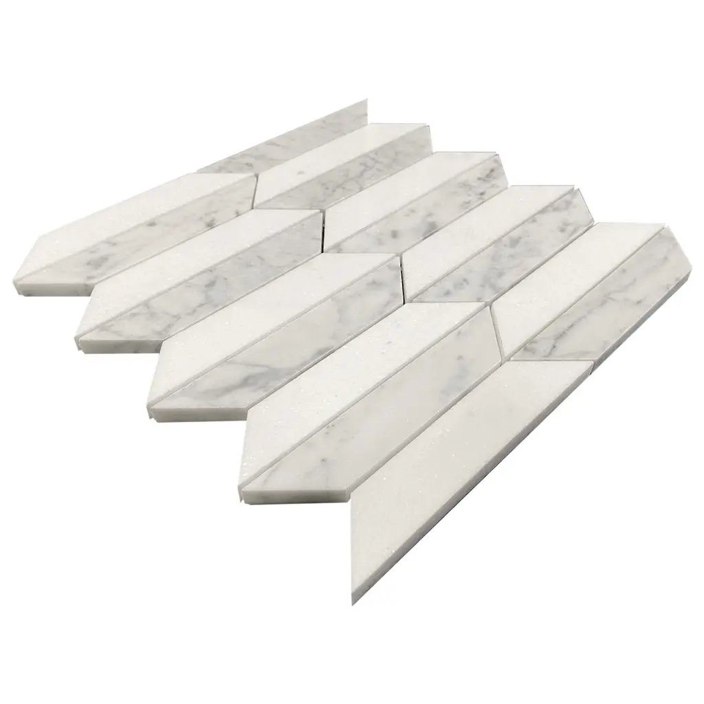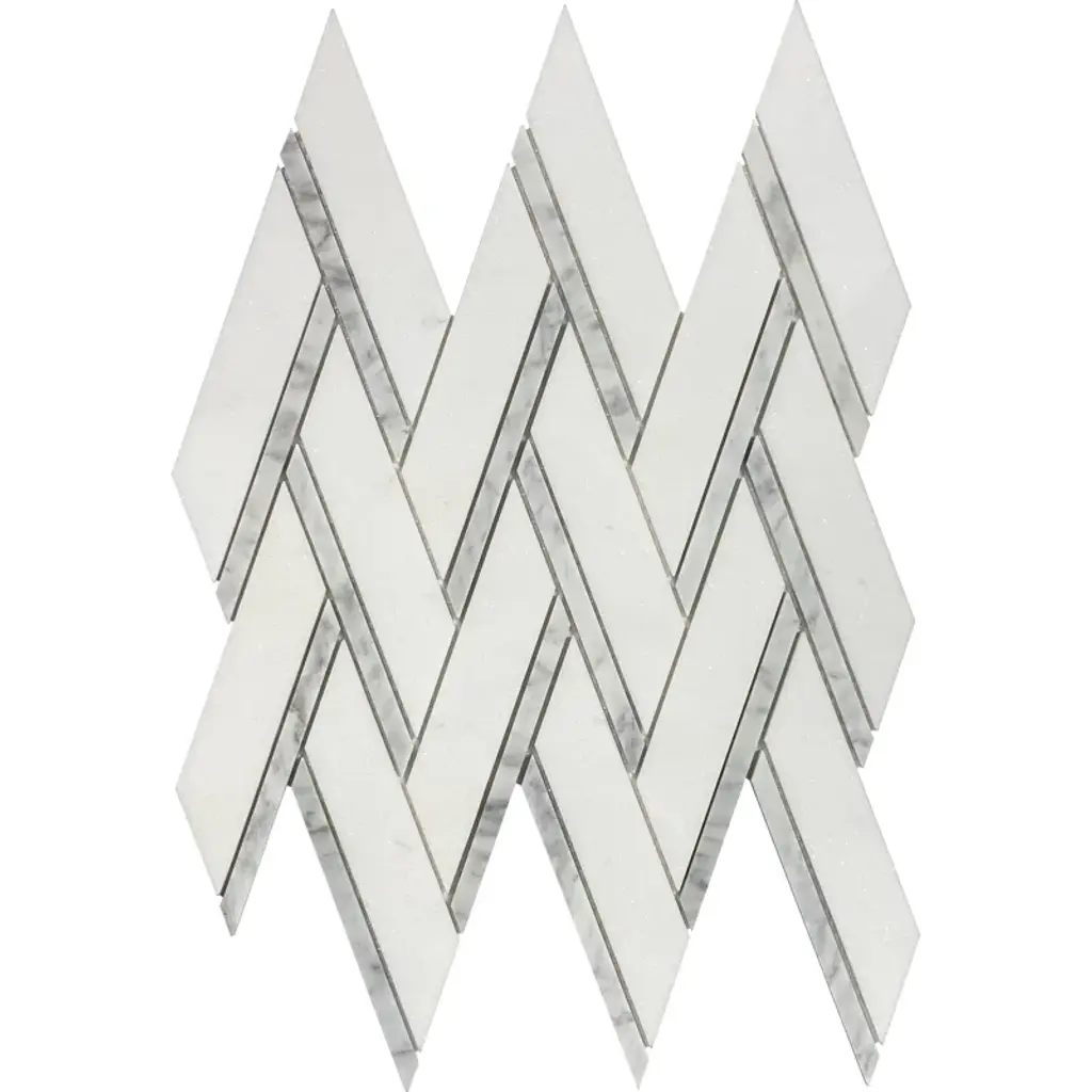 Thassos & Carrara Picket Water Jet Mosaic Tile is a type of decorative tiling made up of small, elongated, and pointed-shaped pieces arranged in a picket fence pattern. The mosaic features a combination of Thassos and Carrara white marbles, creating a luxurious and sophisticated look. The polished finish of the tiles further enhances their beauty and shine, making them ideal for use in high-end residential or commercial settings. The natural strength and durability of marble ensure that this mosaic will last for many years with proper care and maintenance. Thassos & Carrara Picket Water Jet Mosaic Tile is a unique and modern choice for anyone looking to add a touch of elegance and interest to their space.What's included?Product Details Sample Details