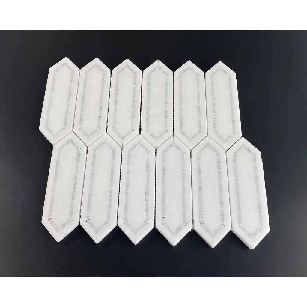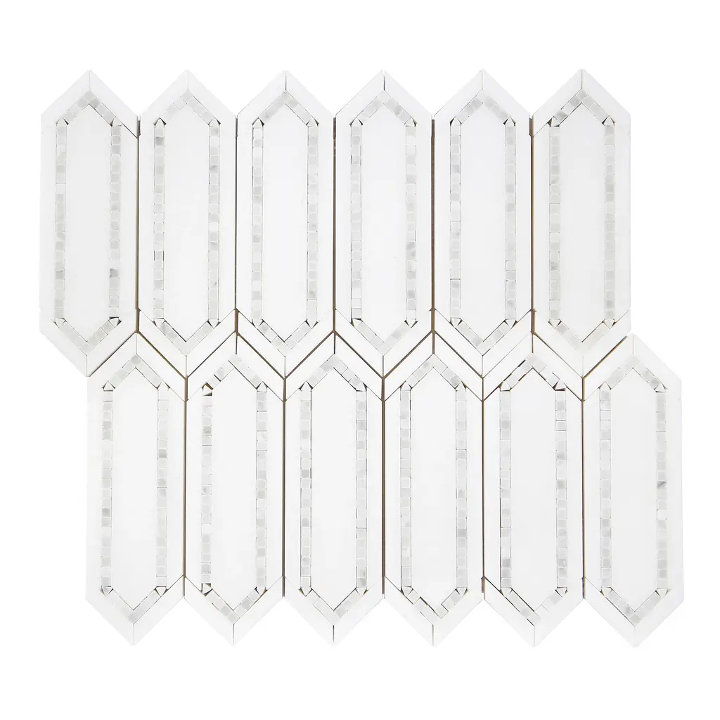 Thassos White And White Carrara Long Honeycomb Marble Mosaic Tiles - Case (5 Sheets) - Case (5 Sheets) - Thassos White / White Carrara