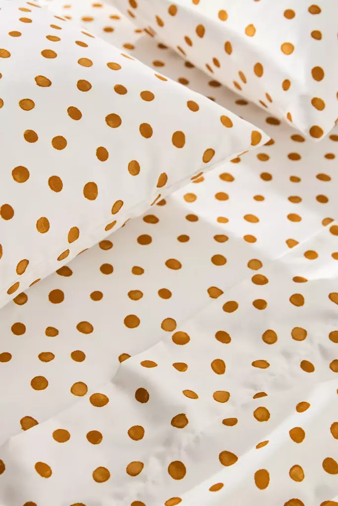 Hallmarked by a lustrous sheen and *oh-so-silky* feel, this organic sateen sheet set invites pattern and poise into your bedroom retreat. Offering a sumptuously soft foundation and luxurious drape, it's ready to be layered, loved, and lived in during any season. Looking for the sweetest of dreams? [Read our guide]( https://www.anthropologie.com/stories-home-bedding-101-guide) to find the perfect bedding for you, and learn how to care for it season after season.