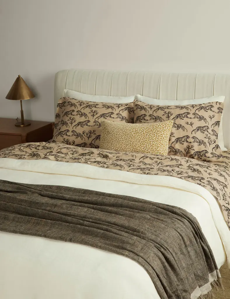 Vintage inspiration meets sustainable comfort in this hemp sheet set. Hemp is a forgotten fabric that is in revival because of its sustainable impact and durable fibersmeaning your bedding lasts longer. Drawn by Sarah's son and styled into an intricate motif, the tiger print offers graphic intrigue for a sophisticated feel. This set is from our exclusive Sarah Sherman Samuel collaboration and features all the trademarks of her warm, edited style.