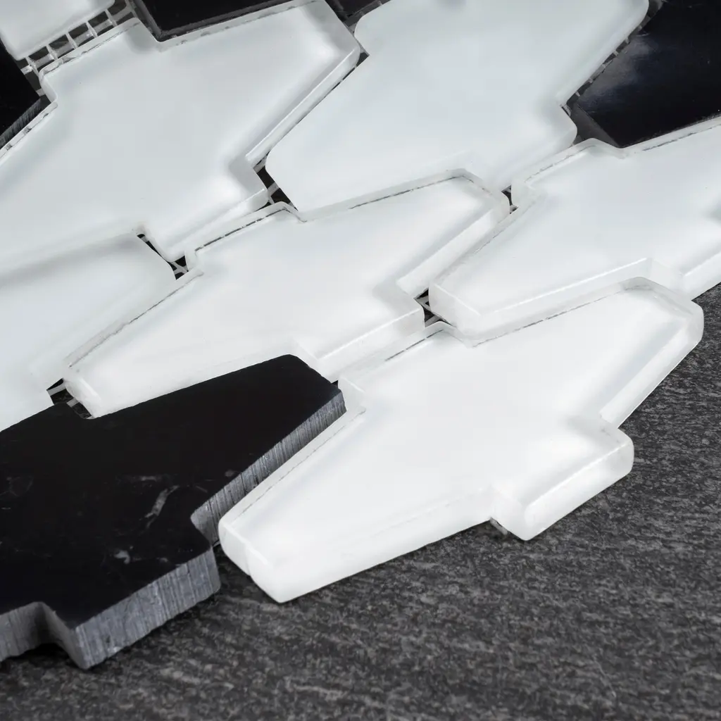 Tile Generation Crossroads 3" x 3" Glass and Stone Mosaic Tile in Blakc/White Wall Tile features semi-gloss patterned irregular design. High-quality glass and stone transforms your home into a magnificent space. The random irregular creates beautiful layouts and designs when mixed and matched with other colors. It also features Low-maintenance and easy clean will make your life so much easier. This premium tile is an ideal and elegant look to your living room, kitchen and bathroom. Details The images have already display the most accurate color. However, color variation may still accurate due to the difference in computer monitor screen. All order will be shipped within 1-2 business days except large quantity order which is over 300 lbs will ship via freight carrier which might expect longer shipping time frame. Each item within an order will be selected from the same lot number which has no color or size variation, but multiple orders may cause receiving multiple lots of products. Please ensure that all tiles for a project is ordered within one order. If any reorder please email us by providing original order number to ensure receiving the same lot of product.