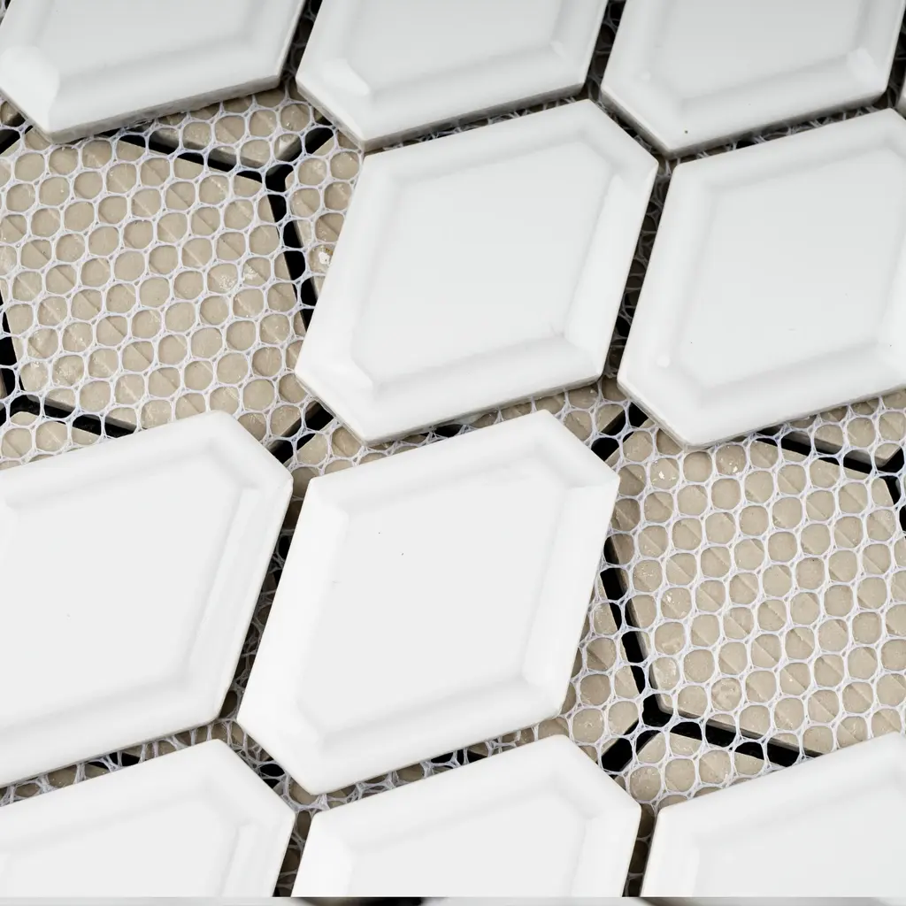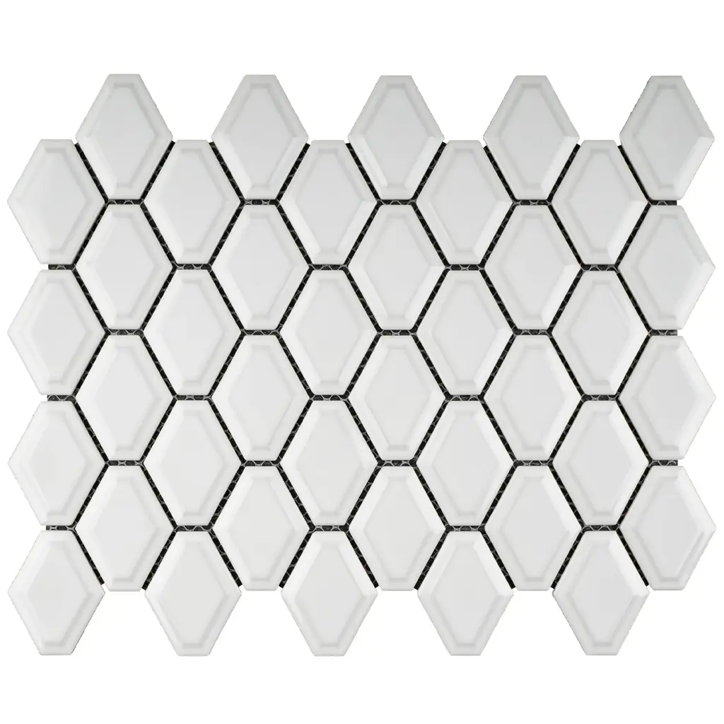 Tilegen. Diamond 2" X 2.5" Porcelain Mosaic Tile In White Floor And Wall Tile (11 Sheets/9.35sqft.) - Case