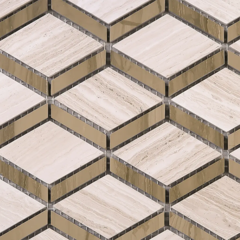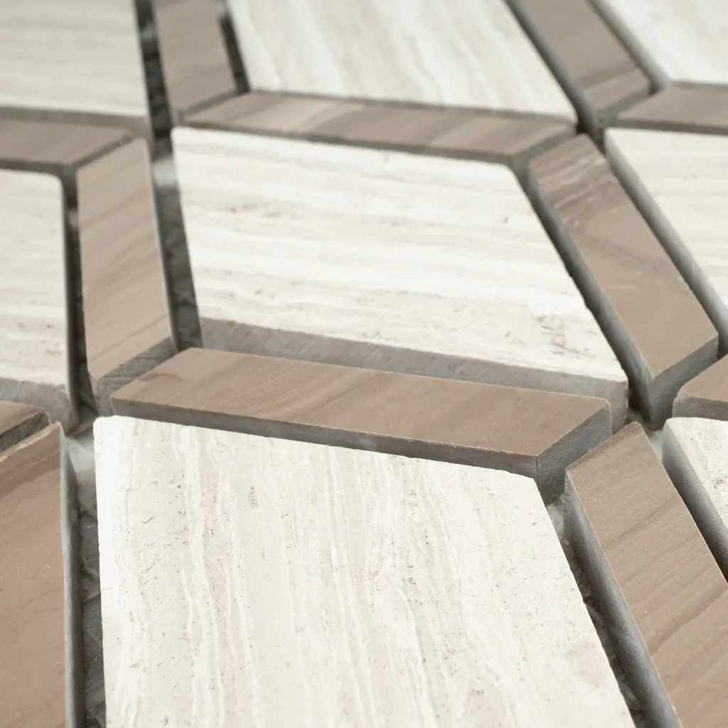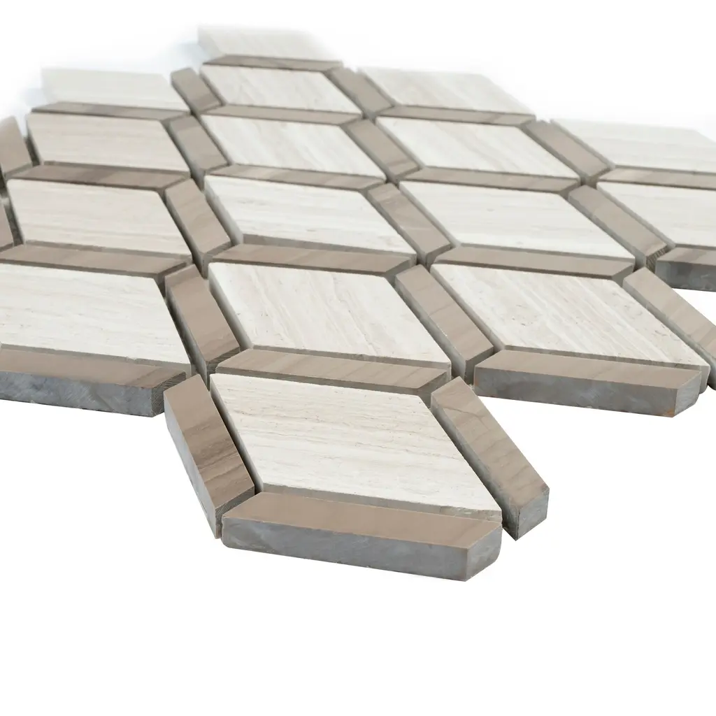 Tilegen. Diamond Shape Random Sized Marble Mosaic Tile In Wooden Beige Floor And Wall Tile (10 Sheets/7.3sqft.) - Case