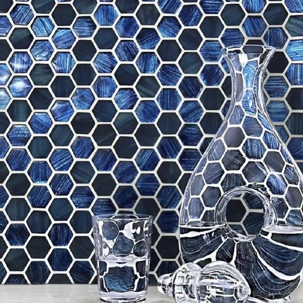 Create a stunning space with TileGen Galaxy Diamond Random Sized Metal and Glass Mosaic Tile in Blue Wall Tile. This premium tile features a glossy patterned Versailles design made from high-quality glass and stainless steel, perfect for elevating your living room, kitchen, or bathroom. The random Versailles creates beautiful layouts and designs when mixed and matched with other colors. Enjoy the low-maintenance and easy clean for a stress-free cleaning experience. Bring elegance and style to your home with TileGen Galaxy Diamond.Features:
