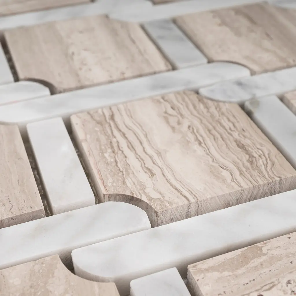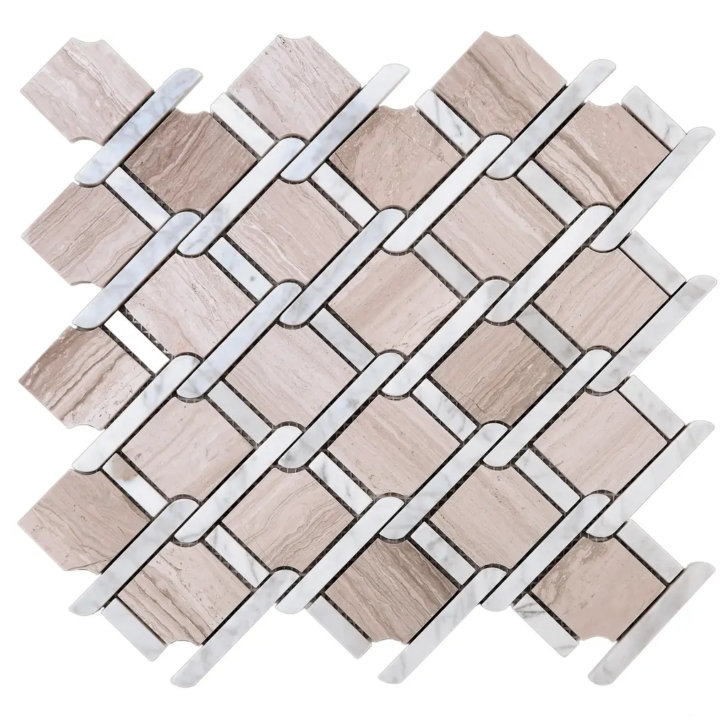 Tilegen. Knot Tie Shape Marble Mosaic Tile In Wooden Beige Floor And Wall Tile (10 Sheets/10.2sqft.) - Case