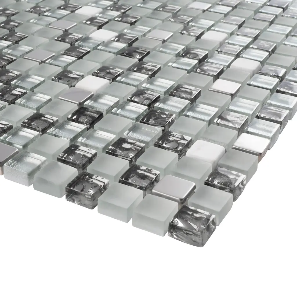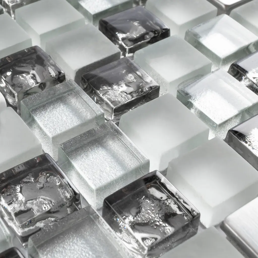 Tile Generation Mini Tiny 0.6" x 0.6" Glass Mosaic Tile in Clear Silver Wall Tile features glossy stone look grid design. High-quality glass transforms your home into a magnificent space. The square grid creates beautiful layouts and designs when mixed and matched with other colors. It also features Low-maintenance and easy clean will make your life so much easier. This premium tile is an ideal and elegant look to your living room, kitchen and bathroom. Details The images have already display the most accurate color. However, color variation may still accurate due to the difference in computer monitor screen. All order will be shipped within 1-2 business days except large quantity order which is over 300 lbs will ship via freight carrier which might expect longer shipping time frame. Each item within an order will be selected from the same lot number which has no color or size variation, but multiple orders may cause receiving multiple lots of products. Please ensure that all tiles for a project is ordered within one order. If any reorder please email us by providing original order number to ensure receiving the same lot of product.