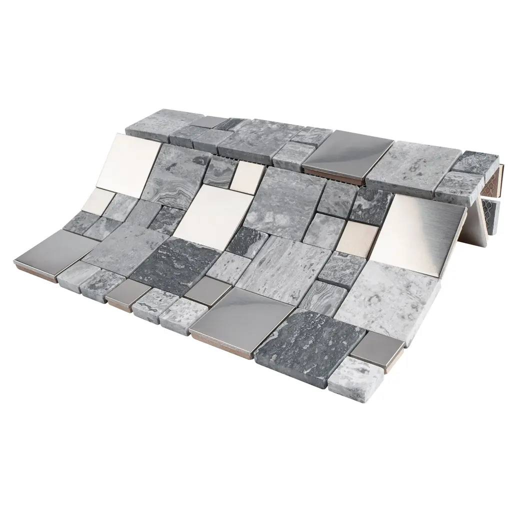 Tilegen. Random Square Mixed Material Tile In Gray/silver Wall Tile (10 Sheets/9.6sqft.) - Case
