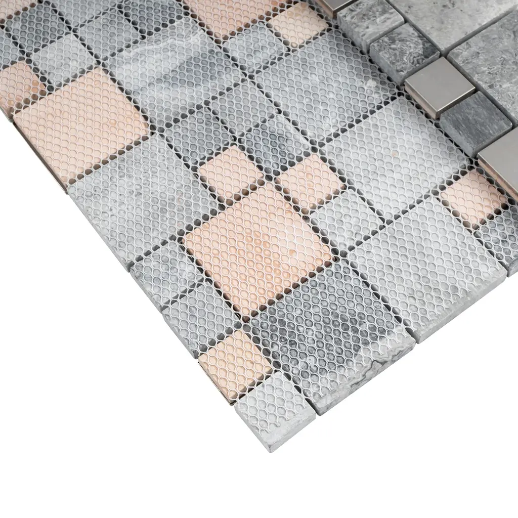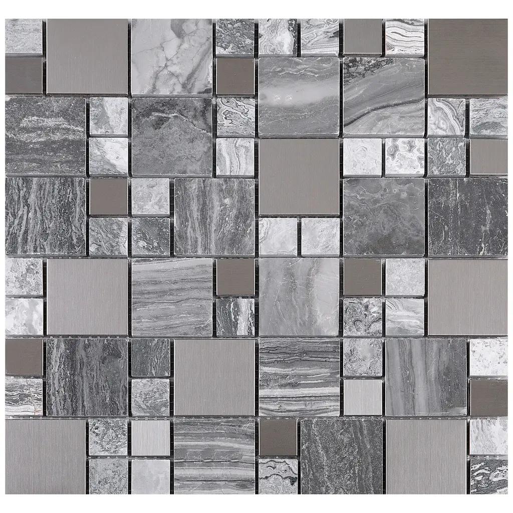 Transform your home into a magnificent space with TileGen Random Square Mixed Material Tile in Gray/Silver Wall Tile. This premium tile features a matte and polished patterned square design made of high-quality aluminum and marble. The random square layout creates beautiful designs when mixed and matched with other colors. Low-maintenance and easy to clean, it's ideal for your living room, kitchen, and bathroom.Features:Details:Shipping Information: