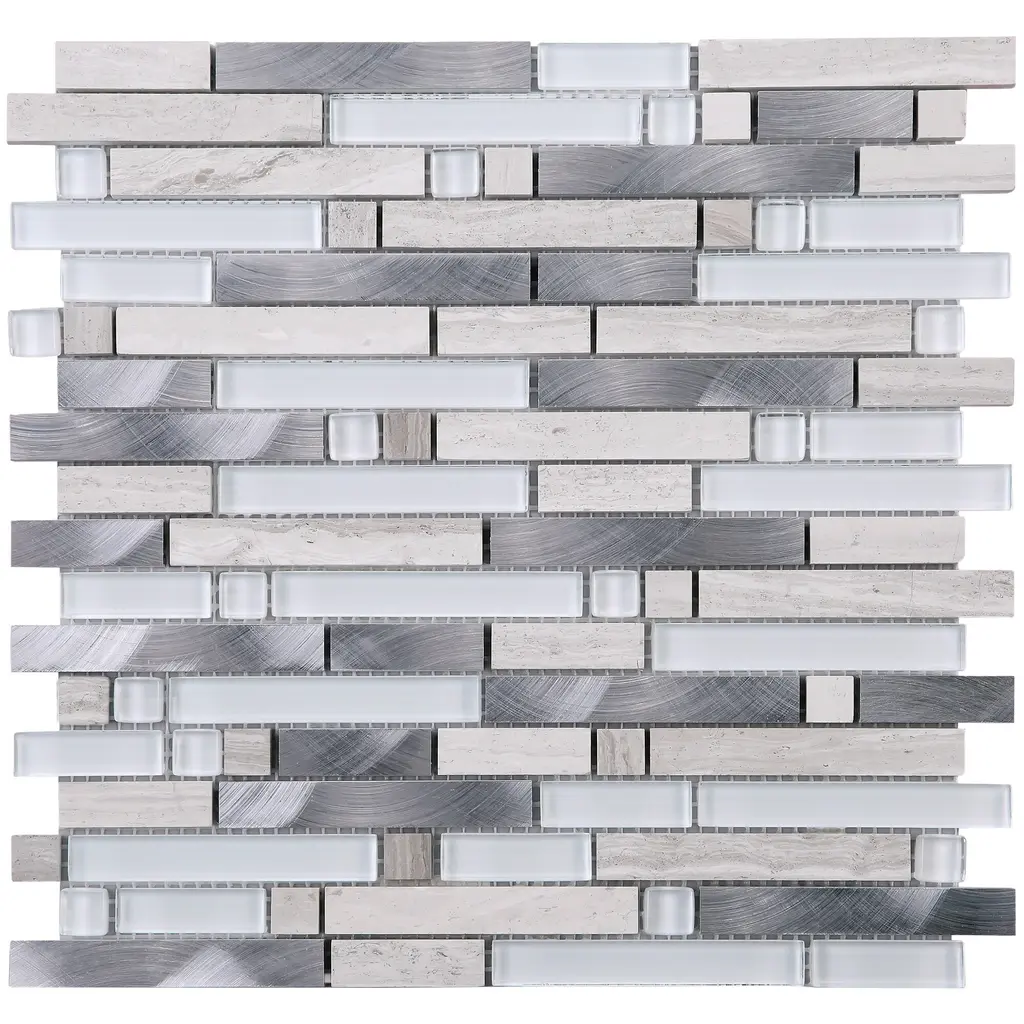 Tile Generation Series Thread Random Sized Mosaic Tile in Beige/White Wall Tile features glossy and matte metal look linear design. High-quality glass,marble and aluminum transforms your home into a magnificent space. The random linear creates beautiful layouts and designs when mixed and matched with other colors. It also features Low-maintenance and easy clean will make your life so much easier. This premium tile is an ideal and elegant look to your living room, kitchen and bathroom. Details The images have already display the most accurate color. However, color variation may still accurate due to the difference in computer monitor screen. All order will be shipped within 1-2 business days except large quantity order which is over 300 lbs will ship via freight carrier which might expect longer shipping time frame. Each item within an order will be selected from the same lot number which has no color or size variation, but multiple orders may cause receiving multiple lots of products. Please ensure that all tiles for a project is ordered within one order. If any reorder please email us by providing original order number to ensure receiving the same lot of product.