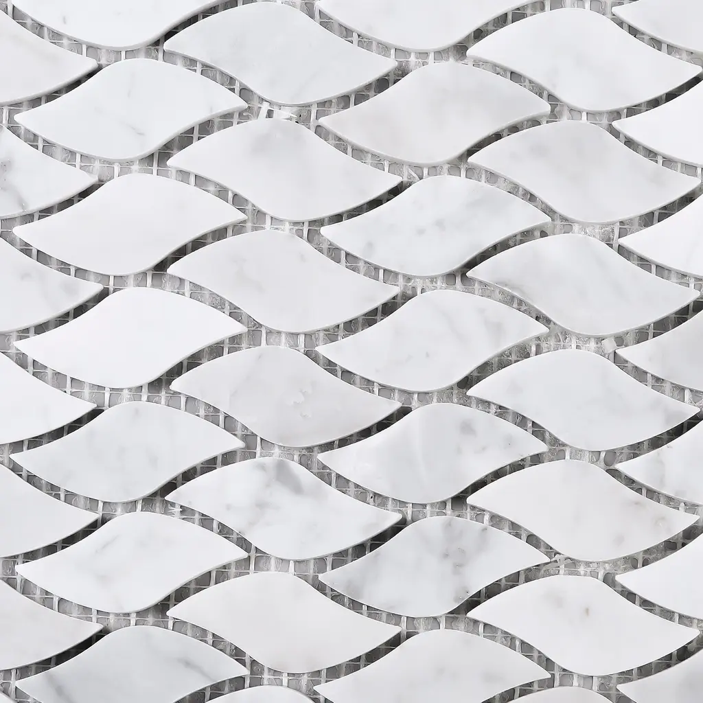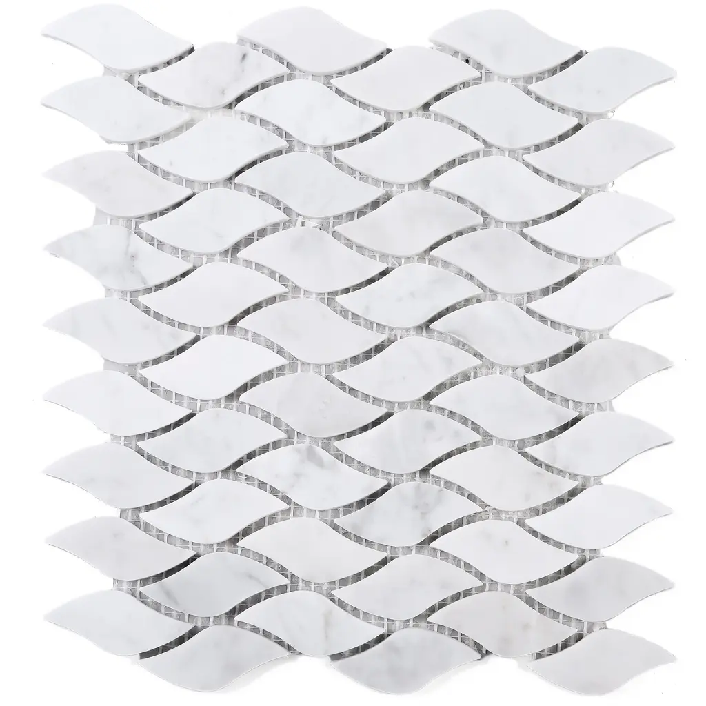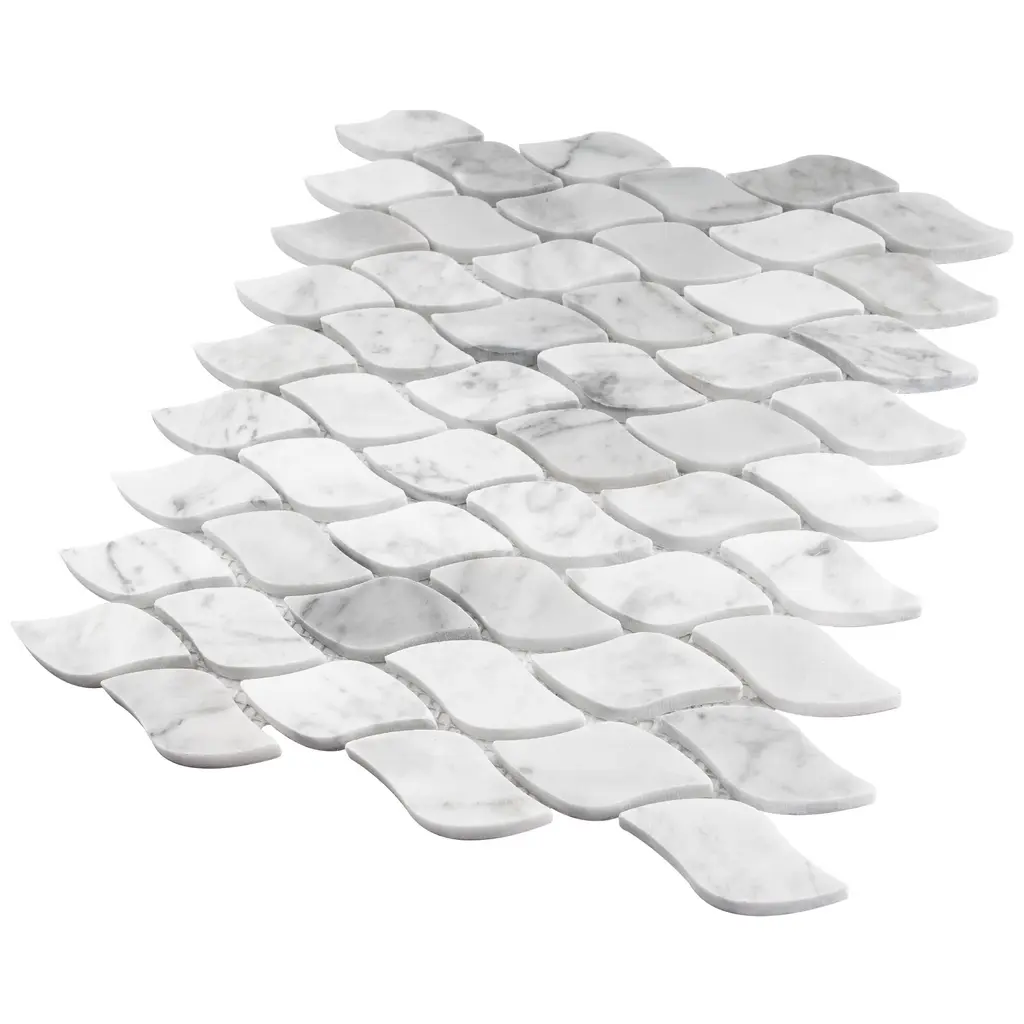 Elevate your home with the luxurious TileGen Waterjet 3" x 3" Pinwheel White Carrara Mosaic Tile in White Floor and Wall Tile. Made of high-quality marble, this premium tile boasts a semi-gloss stone look brick design, creating a beautiful wave pattern that adds elegance to any space. Low-maintenance and easy to clean, it's perfect for your living room, kitchen, or bathroom. Mix and match with other colors to create stunning layouts and designs.Features: