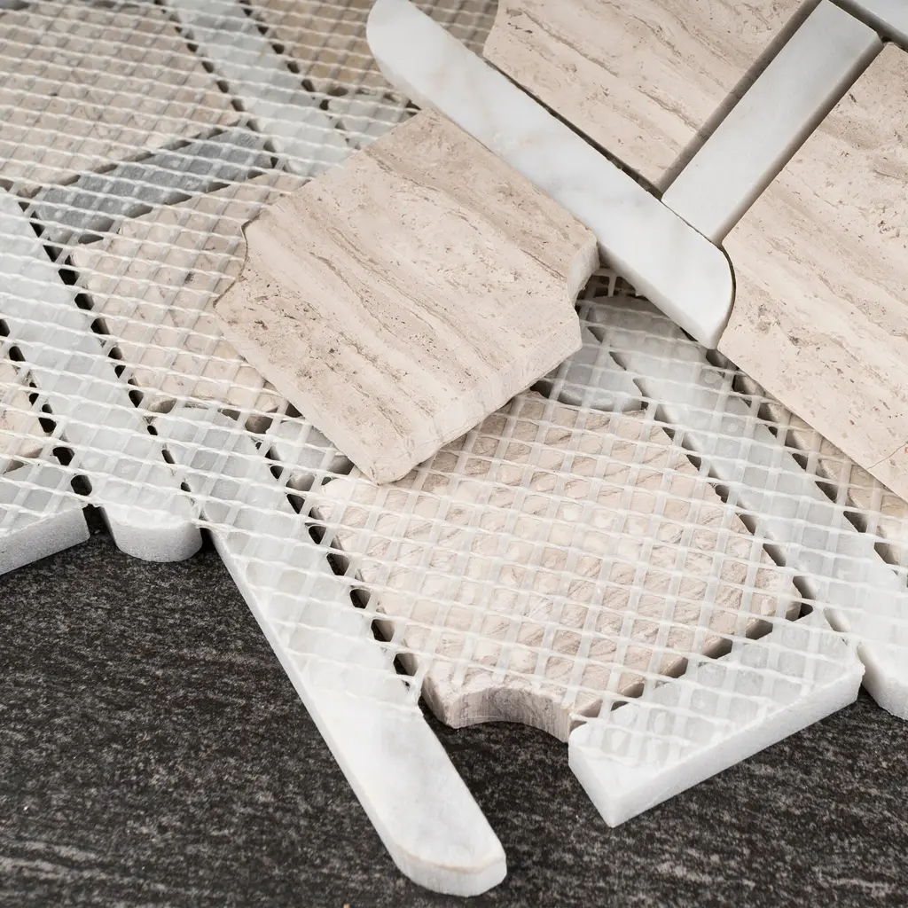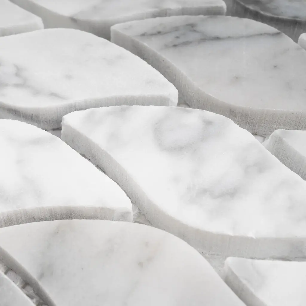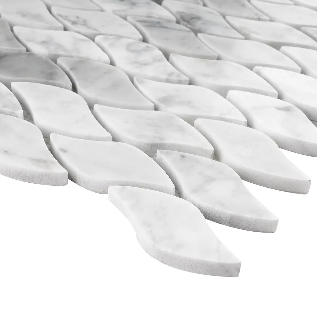 Elevate your home with the luxurious TileGen Waterjet 3" x 3" Pinwheel White Carrara Mosaic Tile in White Floor and Wall Tile. Made of high-quality marble, this premium tile boasts a semi-gloss stone look brick design, creating a beautiful wave pattern that adds elegance to any space. Low-maintenance and easy to clean, it's perfect for your living room, kitchen, or bathroom. Mix and match with other colors to create stunning layouts and designs.Features: