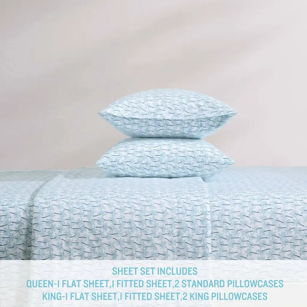 Tommy Bahama King Sheet Set Palmtastic Blue