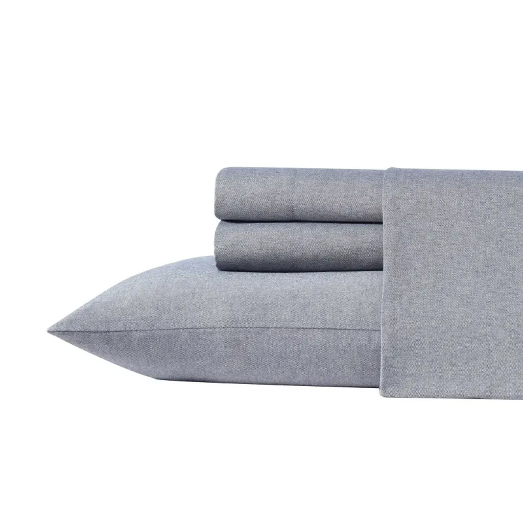 Introducing our luxurious Tommy Bahama Paradise Twill cotton-polyester blend sheets in blue knight. These premium twill sheets are crafted from a blend of 74% cotton and 25% polyester, designed to give you the ultimate in comfort and durability. The soft, breathable cotton ensures a cozy feel, while the polyester provides added strength, wrinkle resistance, and long-lasting quality, making these sheets easy to care for. The twill weave creates a distinctive diagonal texture that is smooth to the touch and enhances durability. The fully elasticized fitted sheet stays in place and fits mattresses up to 18" deep, ensuring a snug fit. The set includes one flat sheet, one fitted sheet, and two pillowcases, offering everything you need for a stylish and comfortable bed.