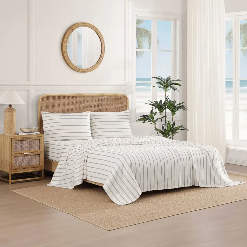 Tommy Bahama Queen 300 Thread Count Sheet Set La Vida Stripe Brown