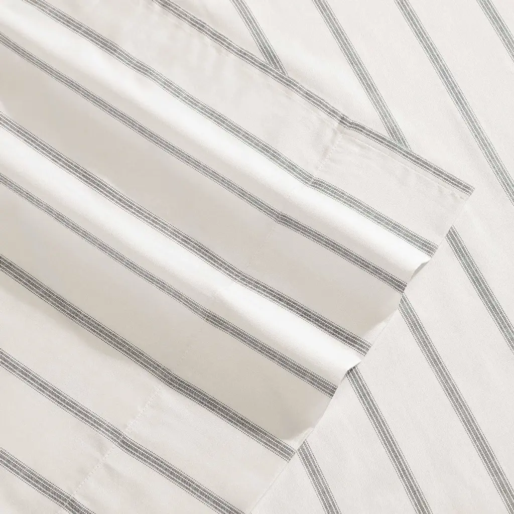 Bring effortless elegance to your bedroom with the Tommy Bahama La Vida Stripe cotton sateen sheet set. Featuring a simple yet elegant light green stripe design, this set adds a timeless, versatile pattern that complements both Solid and patterned bedding. Crafted from long-staple cotton with a 300-thread count and sateen weave, these sheets offer a super-soft, silky feel that becomes even softer with each wash. Available in queen and king sizes, the set includes a fully elasticized fitted sheet to ensure a snug fit and keep the sheet securely in place. Machine washable for easy care, this sheet set combines classic style and lasting comfort, perfect for creating a cozy and inviting bedroom.
