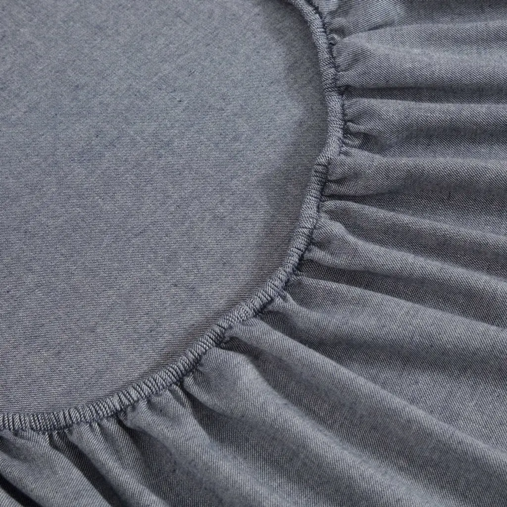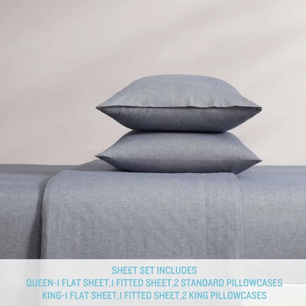 Introducing our luxurious Tommy Bahama Paradise Twill cotton-polyester blend sheets in blue knight. These premium twill sheets are crafted from a blend of 74% cotton and 25% polyester, designed to give you the ultimate in comfort and durability. The soft, breathable cotton ensures a cozy feel, while the polyester provides added strength, wrinkle resistance, and long-lasting quality, making these sheets easy to care for. The twill weave creates a distinctive diagonal texture that is smooth to the touch and enhances durability. The fully elasticized fitted sheet stays in place and fits mattresses up to 18" deep, ensuring a snug fit. The set includes one flat sheet, one fitted sheet, and two pillowcases, offering everything you need for a stylish and comfortable bed.