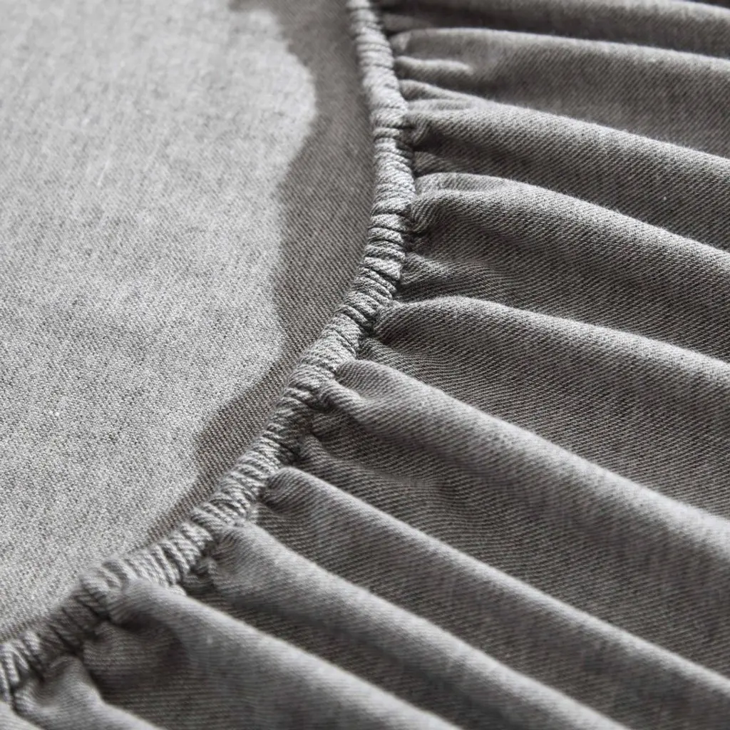 Introducing our luxurious Tommy Bahama Paradise Twill cotton-polyester blend sheets in charcoal grey. These premium twill sheets are crafted from a blend of 74% cotton and 25% polyester, designed to give you the ultimate in comfort and durability. The soft, breathable cotton ensures a cozy feel, while the polyester provides added strength, wrinkle resistance, and long-lasting quality, making these sheets easy to care for. The twill weave creates a distinctive diagonal texture that is smooth to the touch and enhances durability. The fully elasticized fitted sheet stays in place and fits mattresses up to 18" deep, ensuring a snug fit. The set includes one flat sheet, one fitted sheet, and two pillowcases, offering everything you need for a stylish and comfortable bed.