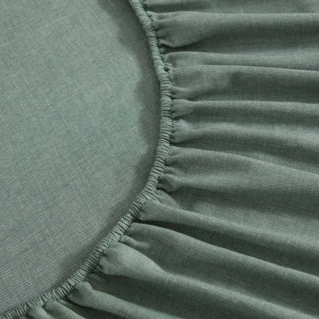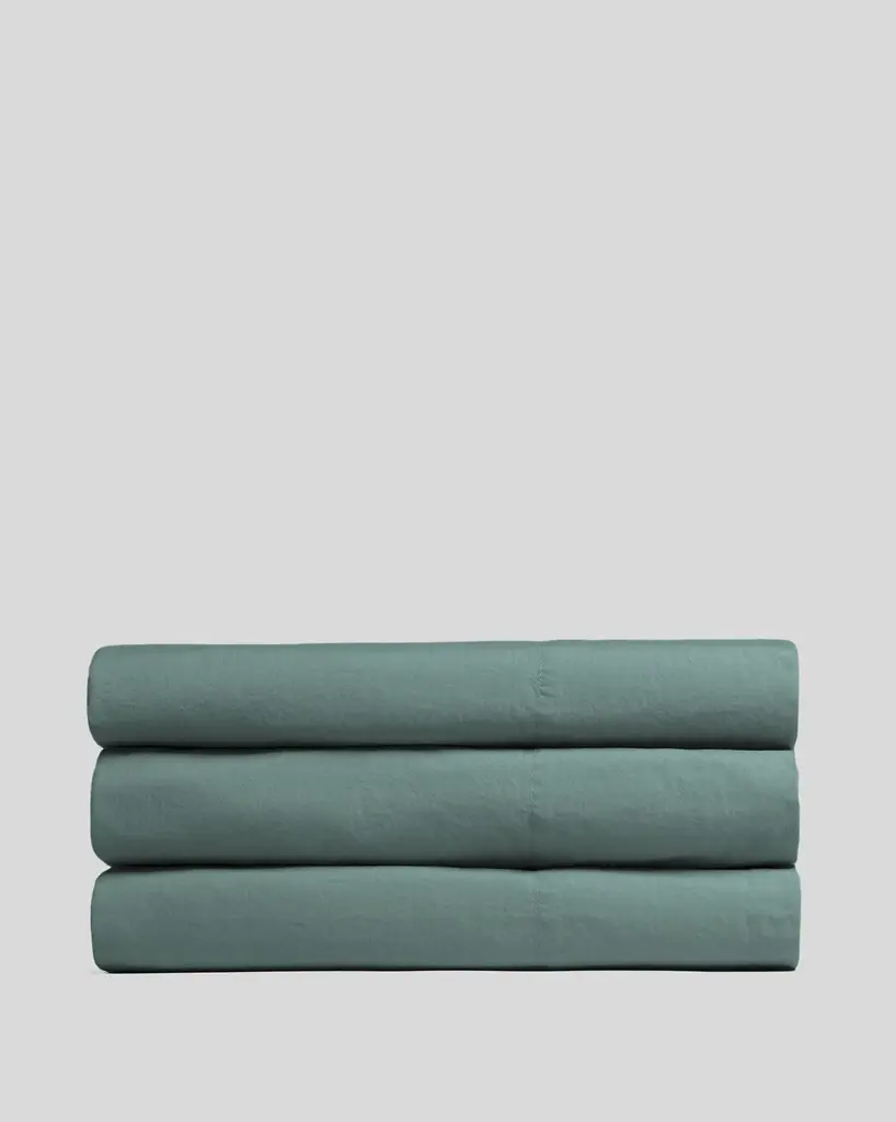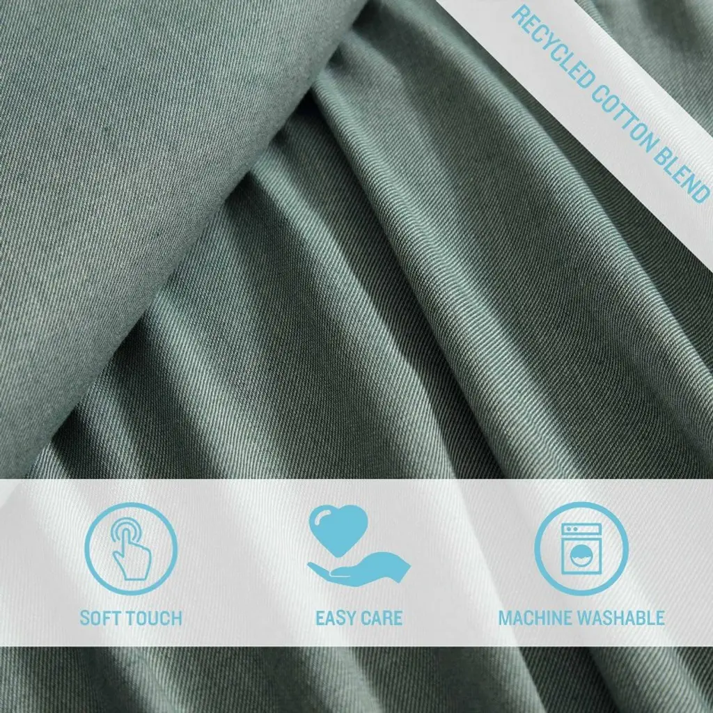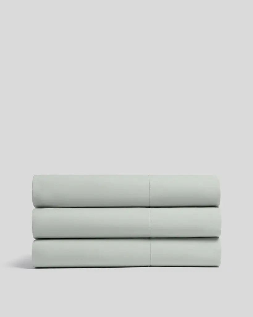 Introducing our luxurious Tommy Bahama Paradise Twill cotton-polyester blend sheets in sea glass green.these premium twill sheets are crafted from a blend of 74% cotton and 25% polyester, designed to give you the ultimate in comfort and durability. The soft, breathable cotton ensures a cozy feel, while the polyester provides added strength, wrinkle resistance, and long-lasting quality, making these sheets easy to care for. The twill weave creates a distinctive diagonal texture that is smooth to the touch and enhances durability. The fully elasticized fitted sheet stays in place and fits mattresses up to 18" deep, ensuring a snug fit. The set includes one flat sheet, one fitted sheet, and two pillowcases, offering everything you need for a stylish and comfortable bed.