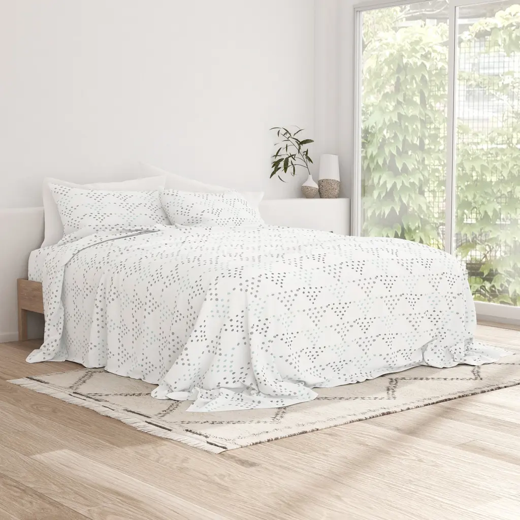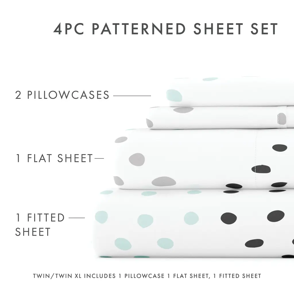 Our double-brushed patterned microfiber sheet set is super soft to the touch and wrinkle-resistant. We use premium yarns that are twice as durable as cotton, which means less risk of rips and wear. Naturally hypoallergenic, our sheets are ideal for sensitive skin and those with allergies. Available in a variety of unique designer prints and patterns, including florals, geometrics, and stripes, making it the perfect new addition to your room!