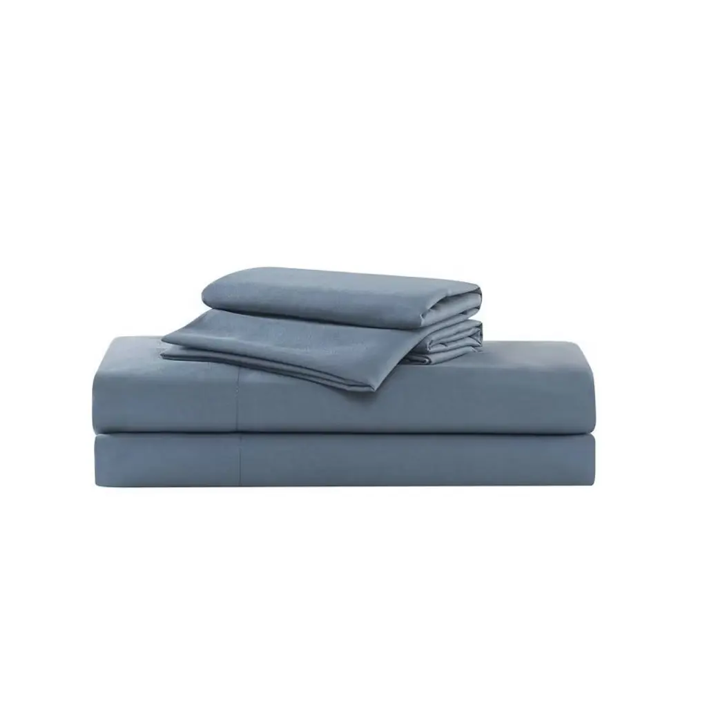 Show your commitment to the planet while enjoying the luxurious softness of our solid color recycled bedding collection. Includes: one flat sheet 81 inches by 96 inches, one fitted sheet 54 by 75 inches with a 15 inch pocket to fit up to an 18 inch mattress, and two standard pillowcases 20 by 32 inches. The fabric is 100% recycled microfiber polyester in a percale weave.