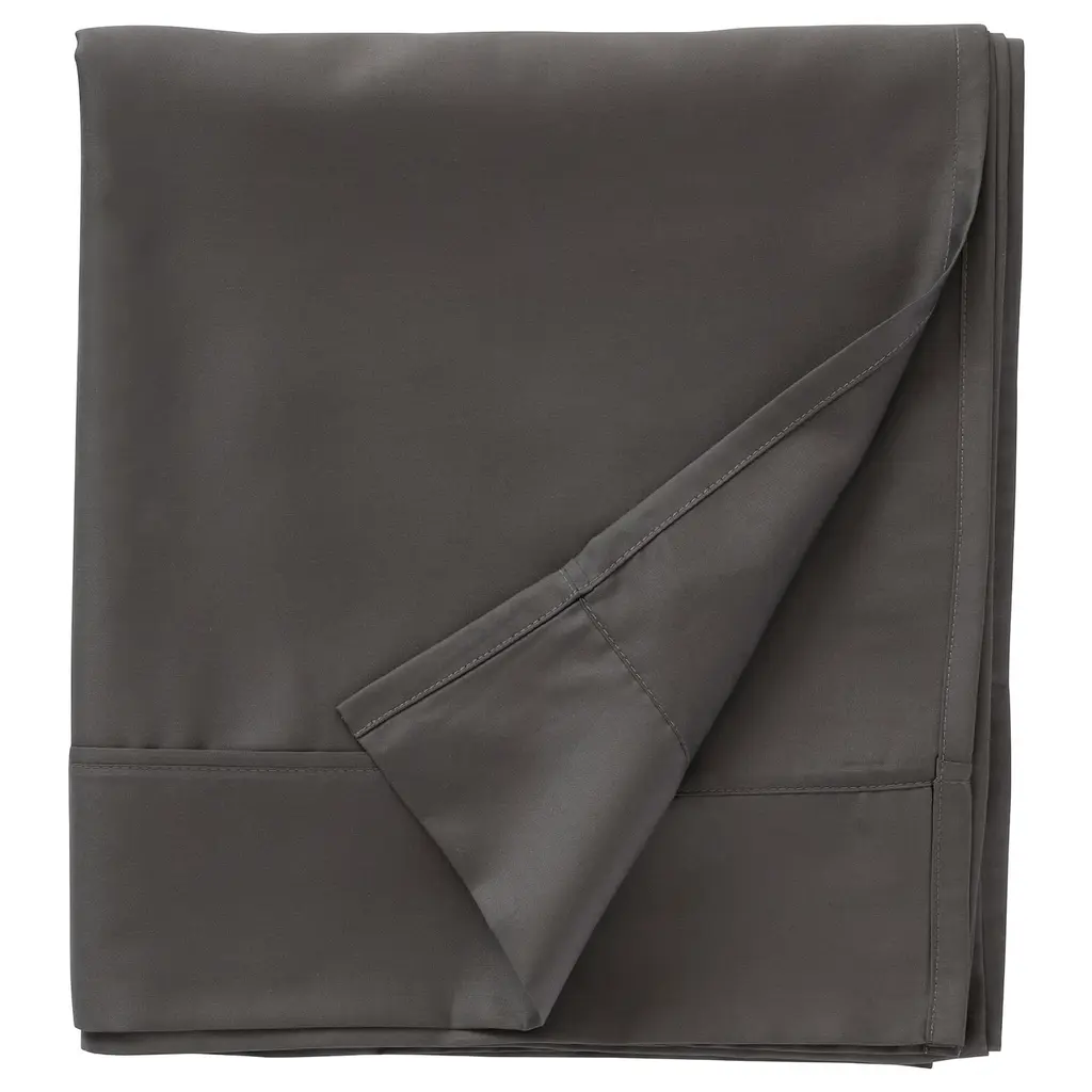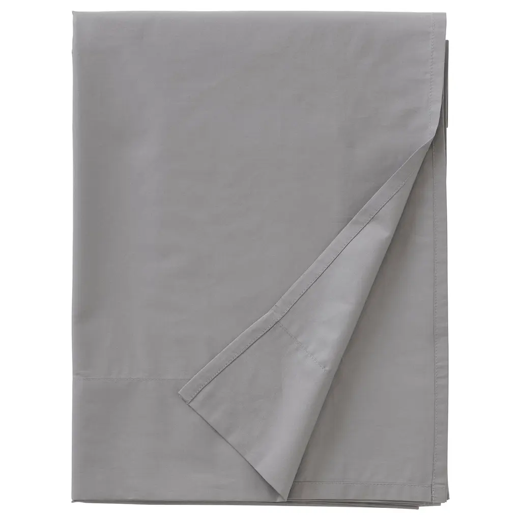 ULLVIDE Flat sheet - gray Queen. The tight percale weave makes the fabric very durable and resistant to pilling. It has a matte surface and is wonderfully crisp, soft and cool to sleep in. Just as easy to put on as to remove and machine wash. 200 thread count.
