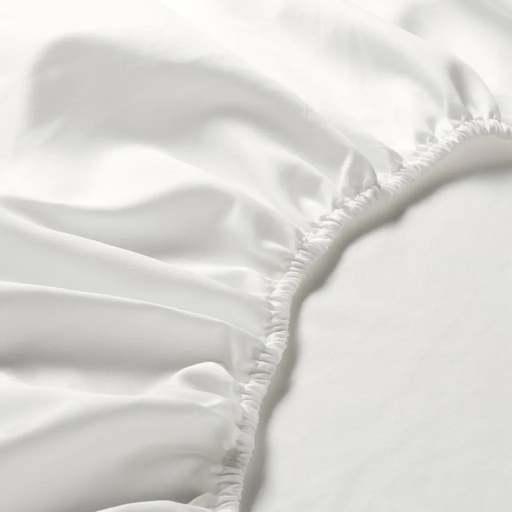 ULLVIDE Sheet set - white King. The tight percale weave makes the fabric very durable and resistant to pilling. It has a matte surface and is wonderfully crisp, soft and cool to sleep in. A set with a sheet, fitted sheet and pillowcases. Just as easy to put on as to remove and machine wash.