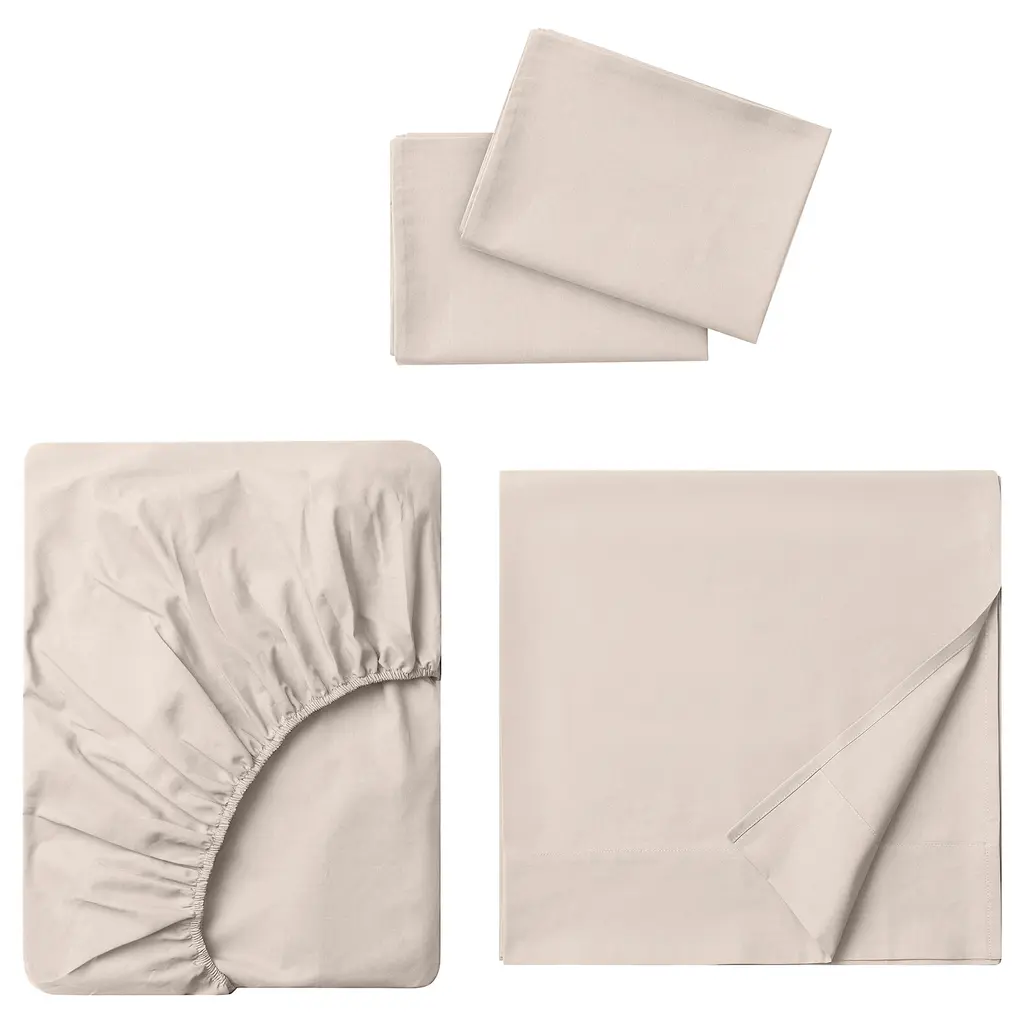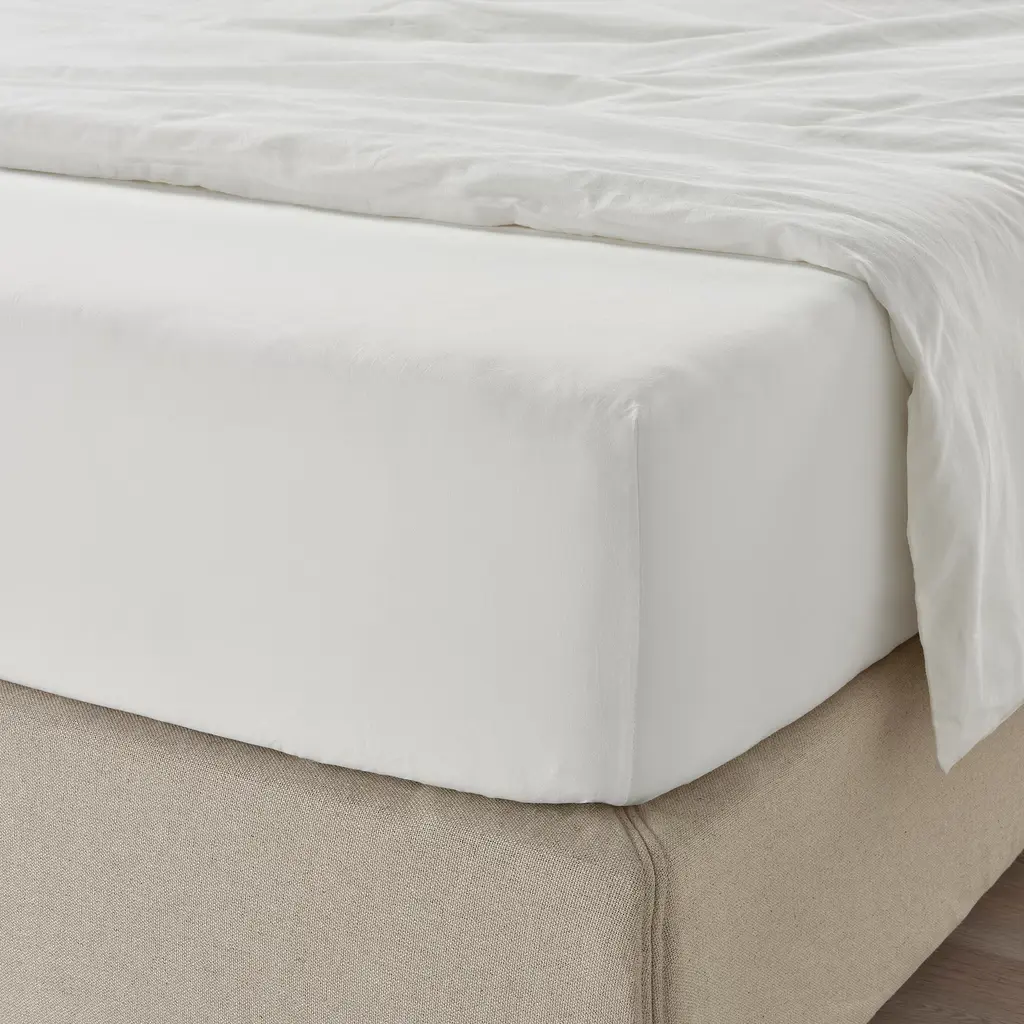 ULLVIDE Sheet set - white Queen. The tight percale weave makes the fabric very durable and resistant to pilling. It has a matte surface and is wonderfully crisp, soft and cool to sleep in. A set with a sheet, fitted sheet and pillowcases. Just as easy to put on as to remove and machine wash.