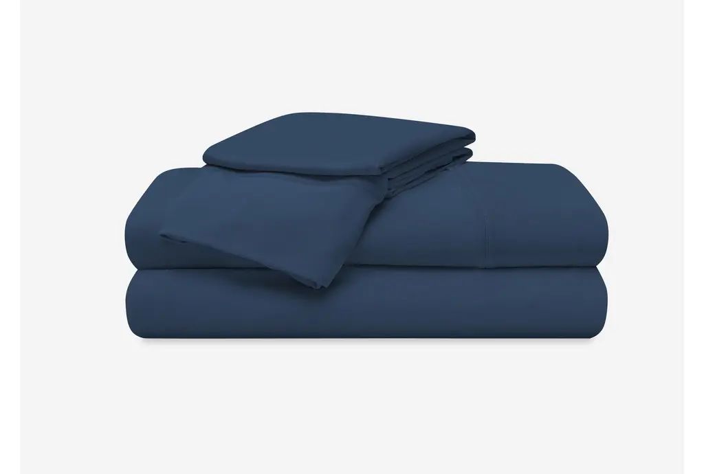 Silky smooth and flexible, with a no friction, cool-to-the-touch feel, the Ver-Tex Navy Sheet Set by Bedgear keeps you comfortable throughout the night by preventing overheating. An elastic Powerband at the corners allows the fitted sheet to stay securely in place while 17-inch pockets accommodate even the thickest mattress. These sheets are designed for everyday life and are machine-washable and dryer-safe.