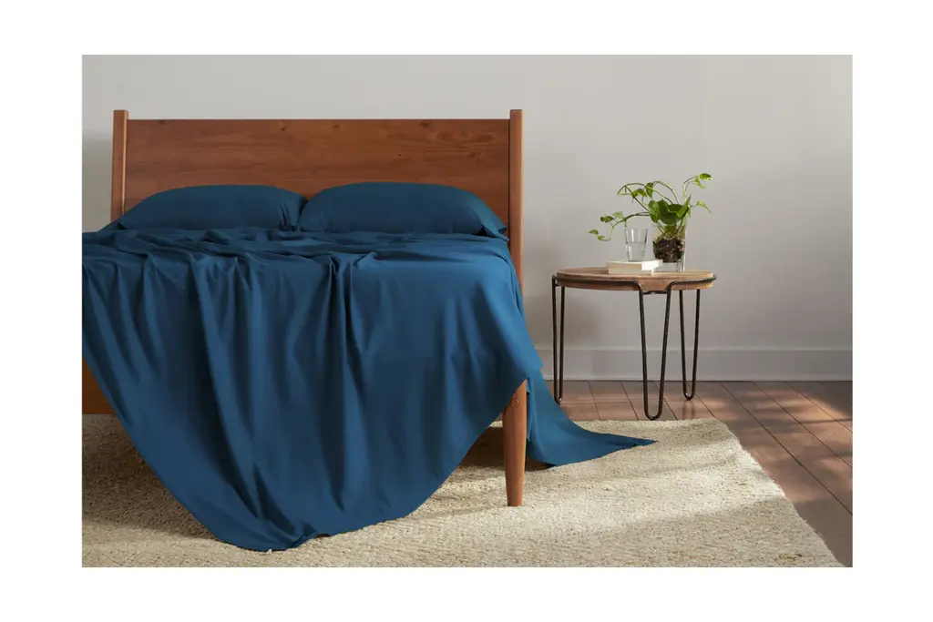 Silky smooth and flexible, with a no friction, cool-to-the-touch feel, the Ver-Tex Navy Sheet Set by Bedgear keeps you comfortable throughout the night by preventing overheating. An elastic Powerband at the corners allows the fitted sheet to stay securely in place while 17-inch pockets accommodate even the thickest mattress. These sheets are designed for everyday life and are machine-washable and dryer-safe.