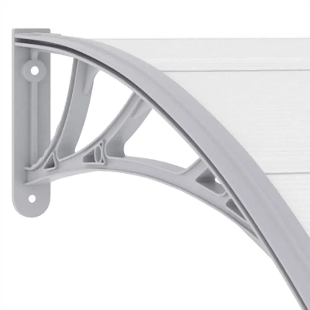This door canopy is the perfect way to protect your entryway, bringing together a sleek look and practical use. At 47.2 x 39.4 in, its modern grey and transparent design not only looks great but also acts as a shield from the weather, keeping outdoor areas friendly and welcoming, even when it's grim outside. Durability: Made with synthetic polycarbonate sheets and tough ABS brackets, this door canopy can handle all sorts of weather. Built to last, it gives reliable coverage over your front door.Weather Resistance: Protects doorways from rain, snow, and hail, keeping your entrance dry and accessible. It's a must for preventing moisture damage.Efficiency: Quick and easy cover means you can come and go without worrying about getting wet. Super handy during sudden rain!Modern Design: With its clean lines and smooth texture, the grey canopy looks great with any home, boosting its curb appeal while still being practical.Easy Installation: Comes with all the bits you need for setup. The full instructions help you get it mounted and ready in no time.