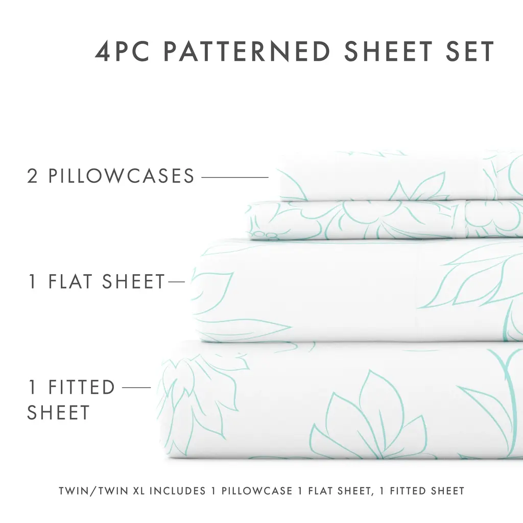 Our double-brushed patterned microfiber sheet set is super soft to the touch and wrinkle-resistant. We use premium yarns that are twice as durable as cotton, which means less risk of rips and wear. Naturally hypoallergenic, our sheets are ideal for sensitive skin and those with allergies. Available in a variety of unique designer prints and patterns, including florals, geometrics, and stripes, making it the perfect new addition to your room!