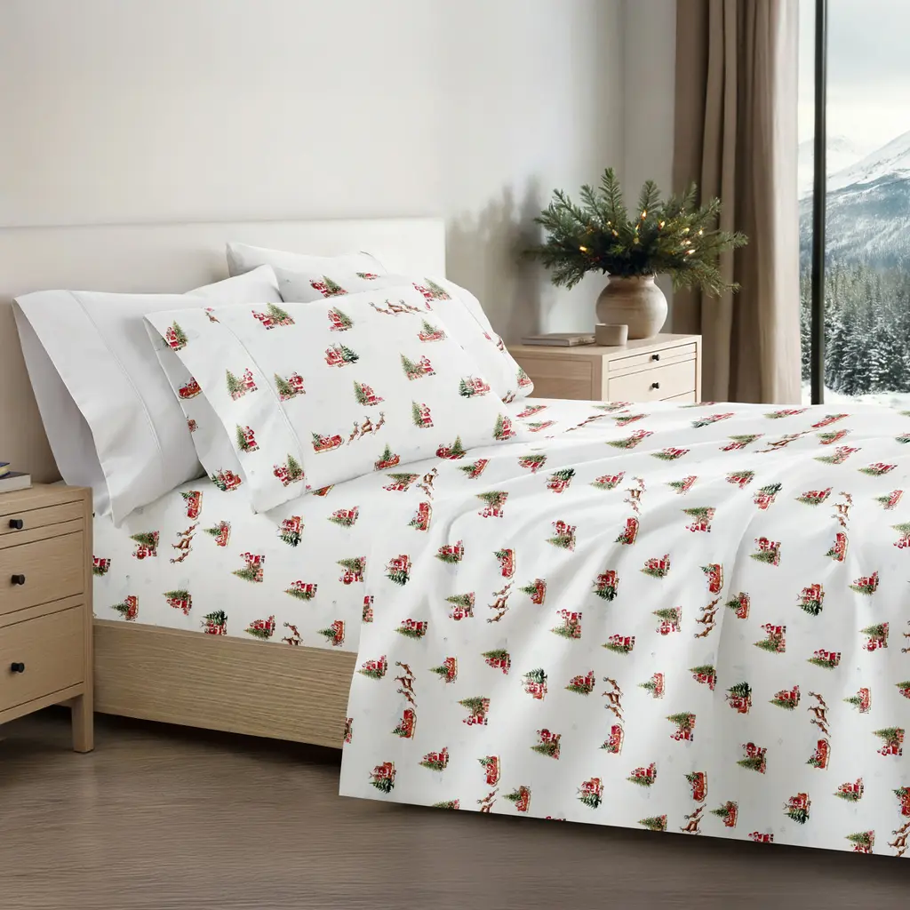 Add a festive layer of comfort to your holiday bedding with our Holiday Microfiber Sheet Set. Woven from ultra-soft, double-brushed microfiber, this set offers a smooth, breathable feel that keeps you cozy all season long.