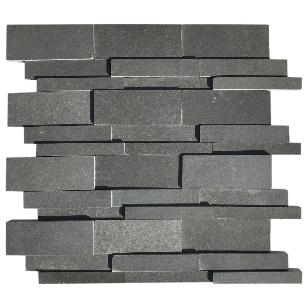 With our Vulcan Black 3D Mosaic Tile it's easy to add a splash of contemporary styling to your decor. This attractive tile features seemingly random strips of honed basalt tile in an interlocking pattern on the mesh sheet that makes installation a much easier process. Trendy gray shades of natural basalt of varied thickness create a distinct 3D pattern for install in kitchens, bathrooms and other residential or commercial spaces.What's includedProduct DetailsSample Details
