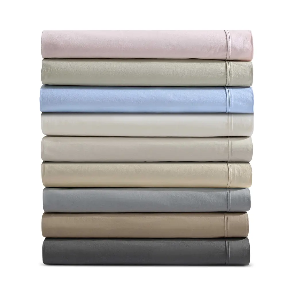The Calvin Klein washed percale collection is available in sheet sets, duvet sets, and comforter sets for a modern monochromatic bed. Crafted from 200-thread count cotton percale and garment washed, it feels super soft and relaxed.