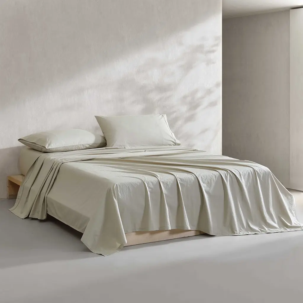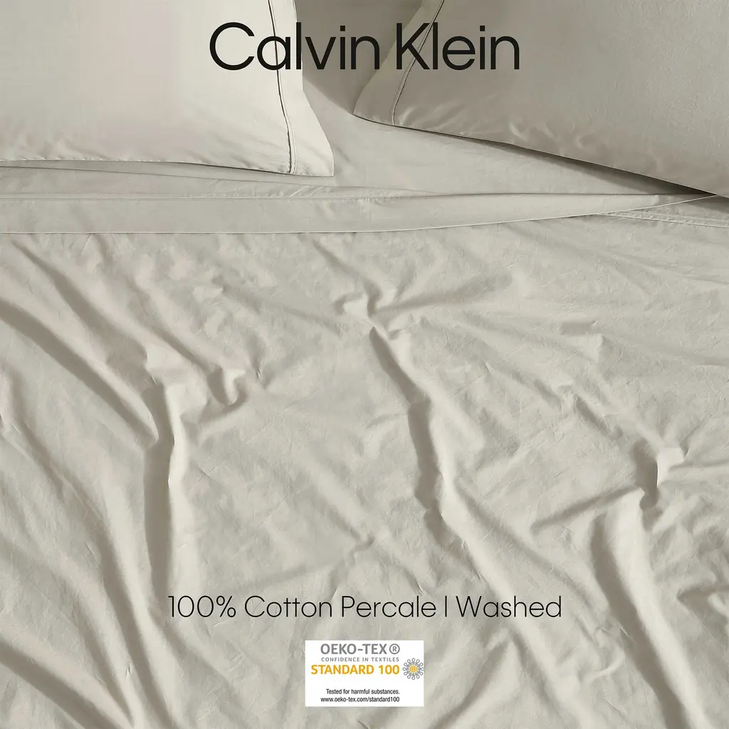 The Calvin Klein washed percale collection is available in sheet sets, duvet sets, and comforter sets for a modern monochromatic bed. Crafted from 200-thread count cotton percale and garment washed, it feels super soft and relaxed.