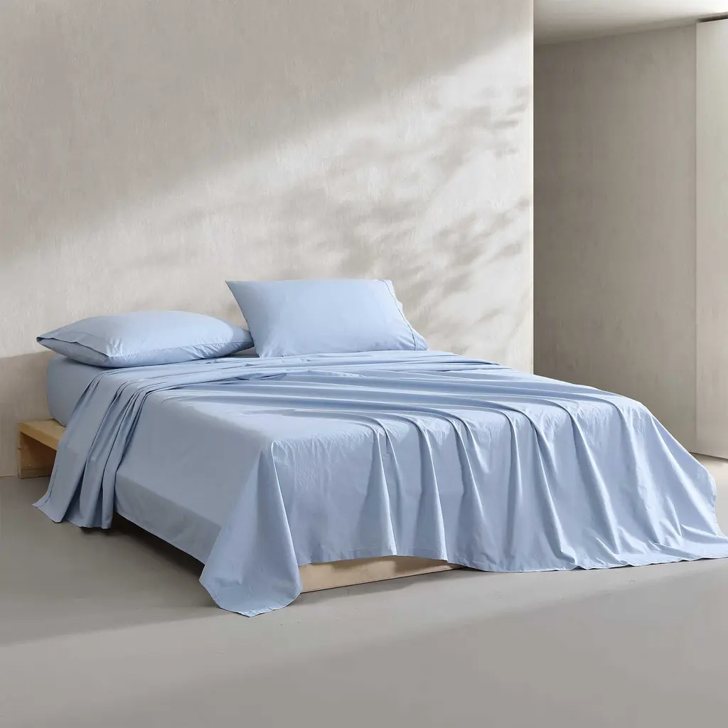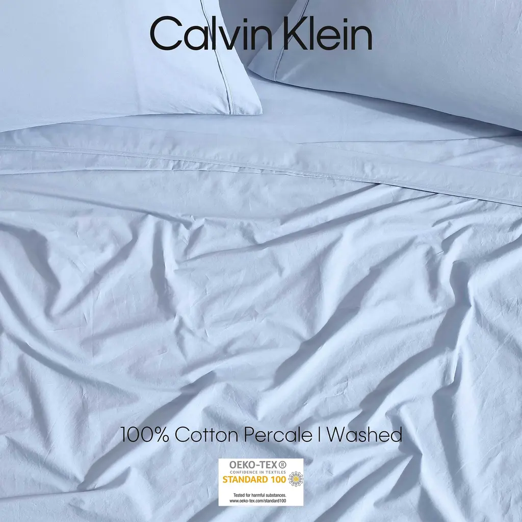 The Calvin Klein washed percale collection is available in sheet sets, duvet sets, and comforter sets for a modern monochromatic bed. Crafted from 200-thread count cotton percale and garment washed, it feels super soft and relaxed.