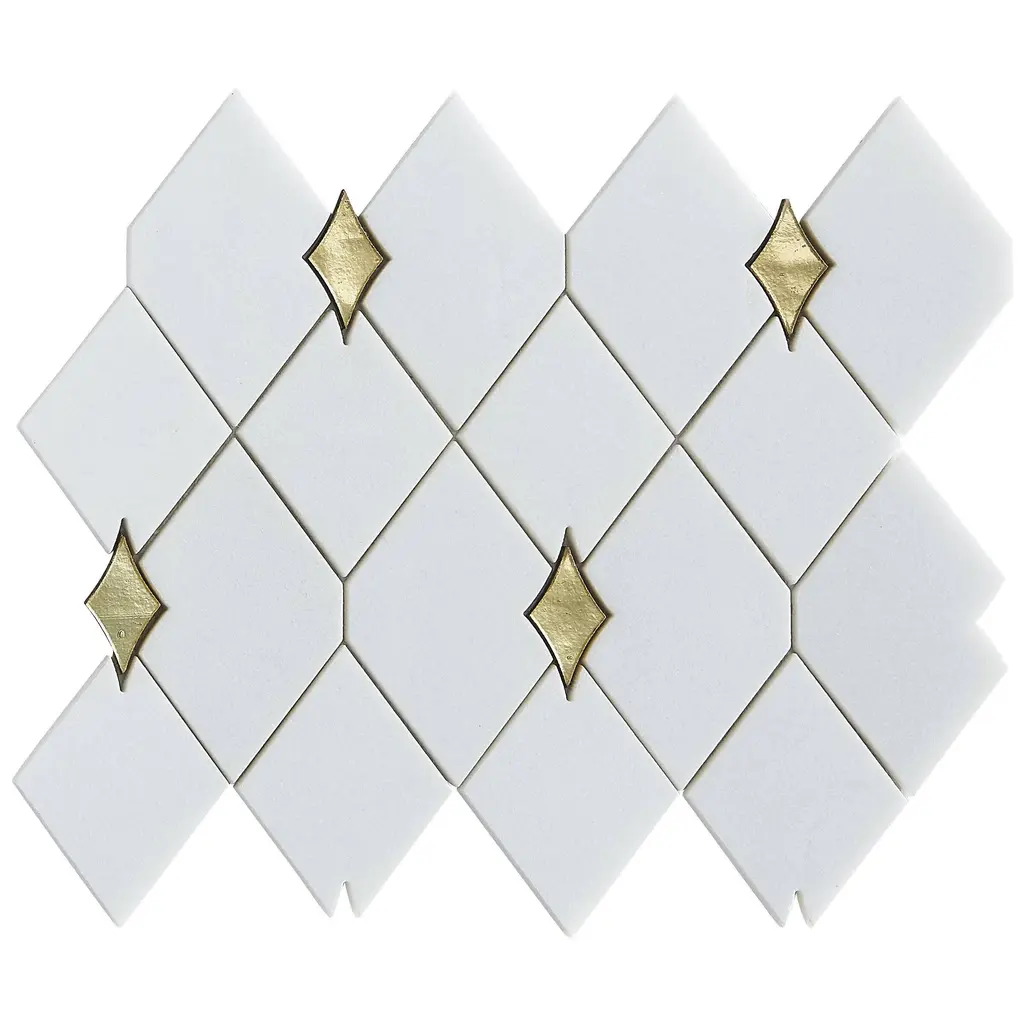 Water Jet 3" X 3.5" Novelty Mosaic Wall & Floor Tile - Case (10 Sheets) - Case (10 Sheets) - Thassos White - Gold Glass